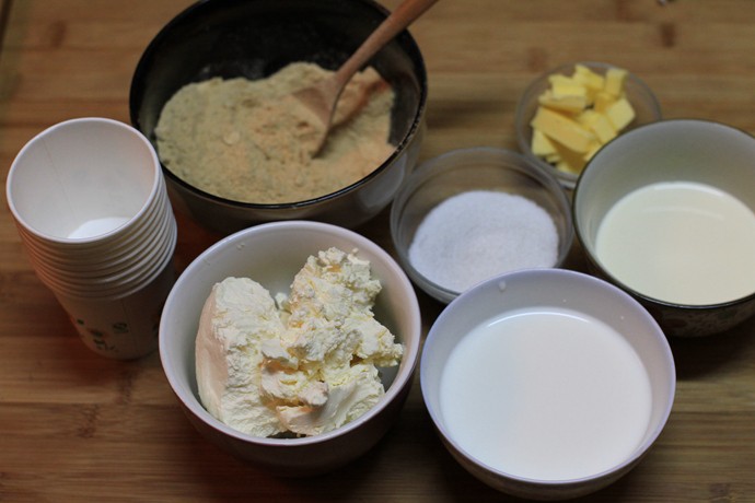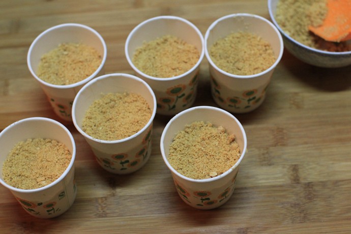 ![]() 首先把全麦饼干打碎,我家自己有破壁机来着,所以我就把饼干全部扔进去打了,因为省事又快嘛。 ![]() 把黄油隔着热水先融化掉 ![]() 融化之后,把饼干屑跟黄油搅拌均匀,先放在一边(我这里的比例是黄油:饼干1:2) ![]() 之后就轮到把奶油奶酪、糖、淡奶油跟纯牛奶混在一起啦!照样是把材料全部丢进破壁机里,搅打个一分半钟左右,混合液就变得顺滑了哦! ![]() ![]() 之后就轮到分装了,把混合液倒在事先准备的6个杯子里~ ![]() 之后再撒上上面打碎了的饼干碎,稍微压一下,东西就变成了这样了 ![]() 把6杯冰棒放进冰柜先冷藏1个小时左右,让它半凝固,再在每个杯子中间插进一个冰棒棍,之后再放进冰柜雪藏3个小时以上,冰棒完全凝固就大功告成啦!直接把杯子撕掉就可以吃了 ![]() 还有几个用奥利奥饼干代替了全麦饼干的,不过照片还没来得及拍就被家里人吃掉了~