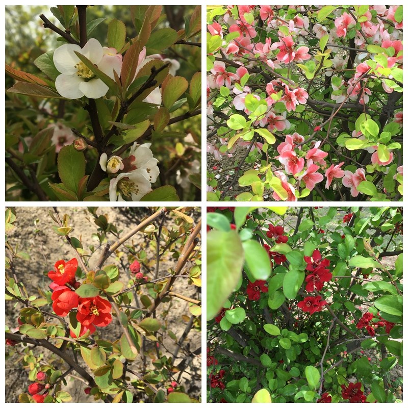 以上这些花,算做春天里最常见的吧,虽然,还是常常分辨不清。 ![]() ![]() 上图,四种不同颜色的贴梗海棠,如今它们已经结出了小果子,下次再发。 ![]() 图1至图9,棣棠,天目琼花(鸡树条荚蒾),绣线菊,木绣球,桃花菊,鸢尾,红花忍冬,马蔺(马兰、马莲),红瑞木。
