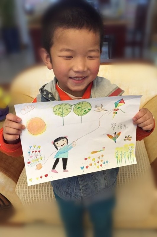 人间四月芳菲尽,北方的春天总是那么短暂。眨眼间那繁花似锦的景象已不多见,很多花儿已经凋谢。最近还经常刮风下雨什么的,能欣赏到的美景真是不多了。看到网上一个活动,我为之一动,跟小家伙提议:“宝贝,你喜欢春天吗?”“喜欢!”“那我们画一幅春天的画好不好?”“可是我不会画啊!我想画冬天。”