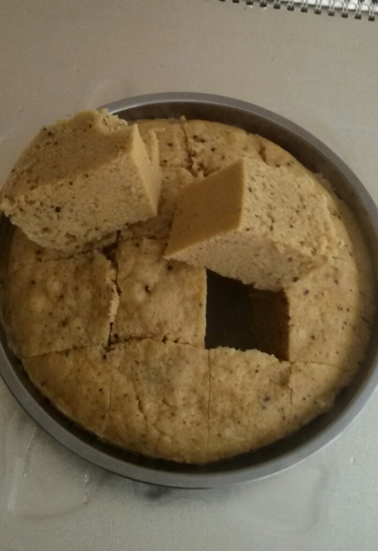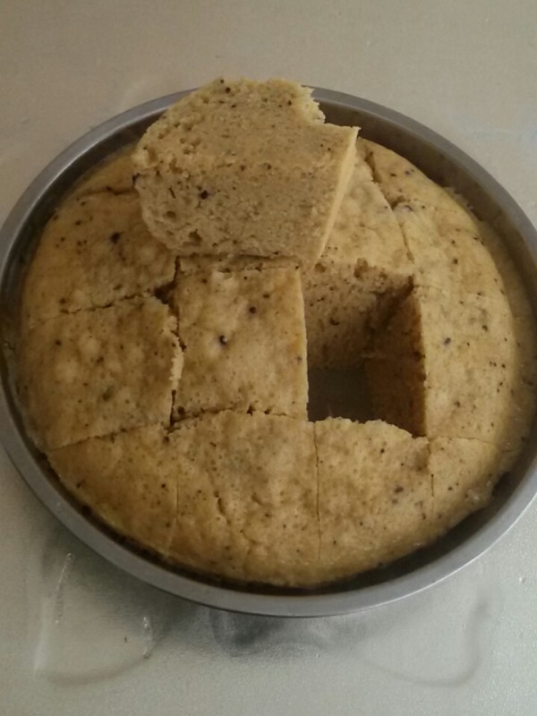 材料准备: 鸡蛋3只、蛋糕粉约180克、红糖半块(约70克) 步骤: 1、 红糖洗净,然后放入开水中浸泡,让其自动熔解,备用(若赶时间的话,就直接把红糖加上水放锅内煮熔); 2、 大碗洗净,然后把鸡蛋全部打入碗内,然后用筷子打散打匀,备用; 3、 在打好的鸡蛋液里徐徐加入黑芝麻核桃粉搅匀; 4、 然后再加入蛋糕粉和适量的红糖水搅匀,静至五分钟左右,备用; 5、 浅盘洗净,抹干水分,然后用花生油涂匀整个盘底,然后再倒入调好的蛋糕糊; 6、 把蛋糕糊放入锅内隔水蒸熟即可关火取出晾凉切块。