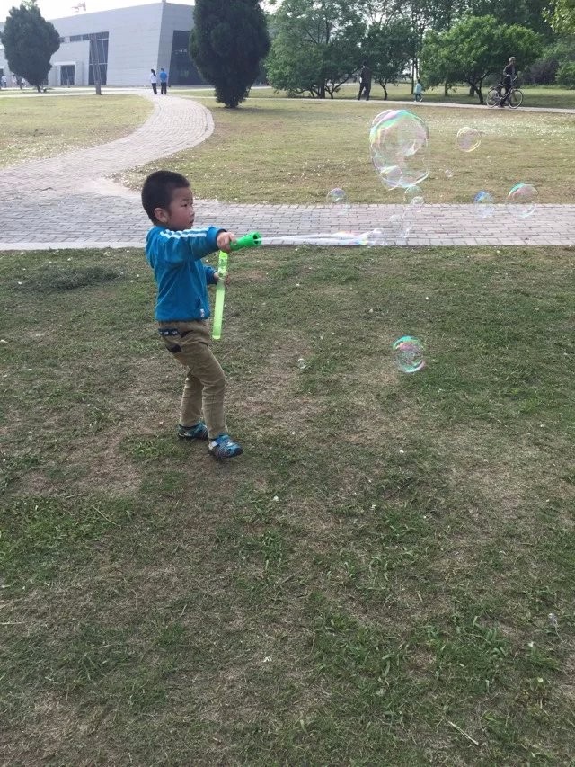 昨天老公还要值班,加上气温突然转高,我们没有出游的打算。小家伙上午非闹着跟爸爸一起去上班,还好下午老公早早就下班了,我们带小家伙去河边玩了一阵子。说起这白河,可是非常大的,大半个城市都被大河环绕。我们最喜欢去的是距离体育场附近那段。因为附近有体育场,周边有大片的空地被开辟出来,营造了一个自由放松的天然湿地公园。居民们可以自由自在地在草地上玩耍嬉戏。旁边还有很多露天的游乐设施和健身场地。