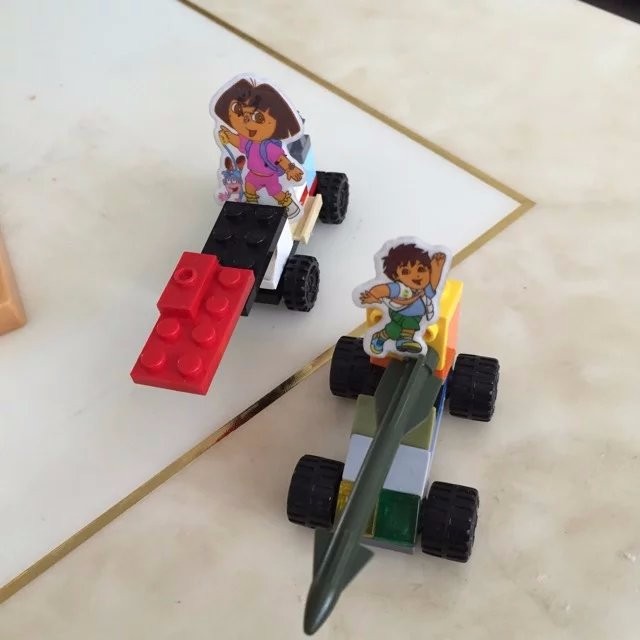 大概在小家伙两岁多的时候,我在网上给小家伙买了两大盒星钻积木的拼装汽车玩具。因为对这种玩具缺乏了解,买回来才发现,买的太小了,零件都特别小,拼装起来是非常麻烦的,难度完全超出了两岁孩子的能力。盒子里又有很多的小盒子,每一个小盒子里都装有一袋小零件,还有一张拼装示范图,每一个都可以拼出三个造型。记得那个时候都是宝爸和我在小家伙的央求下按照说明纸一个个地拼好了后给小家伙当现成的玩具玩。小家伙也是直接当玩具玩,从来没有想过自己拼装。给小家伙拼了几个后,我就把剩余的都收起来了。