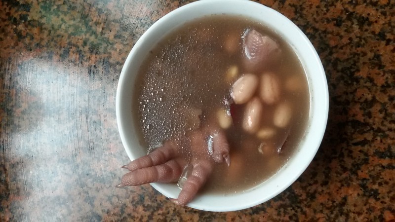 话说我们家已经很久没煲过鸡脚汤了,所以我就琢磨着煲鸡脚汤了。可单纯煲鸡脚的话汤可能不太好喝,再说这也不是俺的作风。考虑到家里还有婆婆种的黄豆,于是我就想用黄豆用煲鸡脚汤了。可单纯用黄豆煲鸡脚的话我怕小不点不太喜欢喝,所以我就琢磨着加入一些花生一起煲了,这样煲出来的汤不但好喝,而且还补钙补血呢。 闲话少说,下面我们开始讲花生黄豆鸡脚汤的做法。