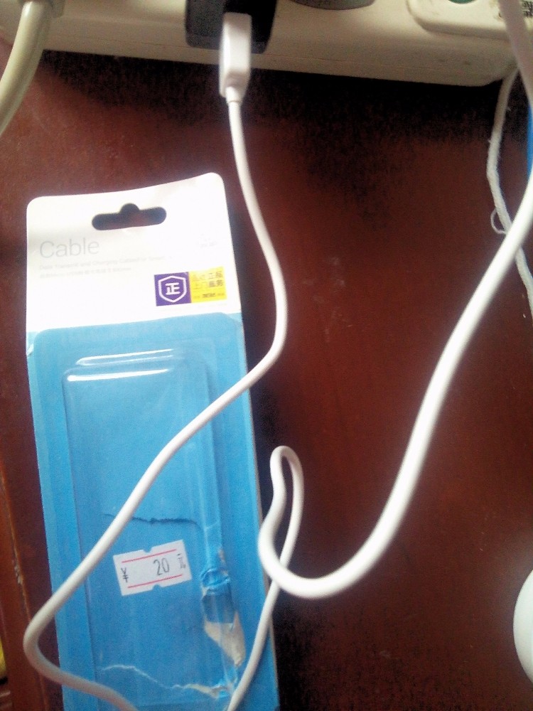 看着手机还有电,我就拿过手机看小说,后来接到电话说有快递,刚好孩子还在睡觉,就让我妈看会孩子,我去拿快递,回来的时候去营业厅买了个数据线,人家问我手机是不是智能的,我自然说是的,又把手机给那人看了下。拿了个包装好的数据线给我,包装好好的,拆了就不行了,我再三确实是否合适,人家说合适我就买了。 上面的价格是20元,我说10元行不?我就想给一半的价钱,不同意啊,后来我给了12元,(*^__^*) 嘻嘻……其实这个也不好说便宜还是贵,要是在网上买,肯定能买到便宜的,可是我的数据线已经坏掉了,现在比较需要,不然手机一会就没有电了,玩不了手机太痛苦了啊。