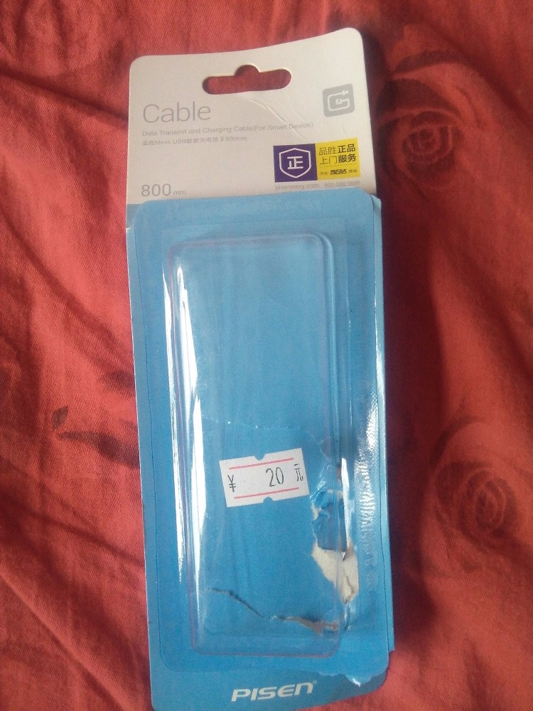 这个数据线的牌子品胜的,这个名字好像有听说过,只要能用就行,看着上面还有防伪,还算正规,在家里买,这个价格也还凑合。上面也有生产日期,15年11月份生产的,这才几个月,还不错。我之前用的数据线是黑色的,这次买的是白色的,一会来就用了,还可以。老公的手机充电器是白色的,儿子看到我用的这个还以为是爸爸的,问我拿爸爸的东西干嘛?我好郁闷,跟他解释了还说是爸爸的,只能继续跟孩子解释,这熊孩子啊。 希望这次的数据线用的时间能够长一点,要是经常坏就太麻烦了。现在的手机质量很多都不好,居然连数据线质量也越来越差了,实在是讨厌啊。
