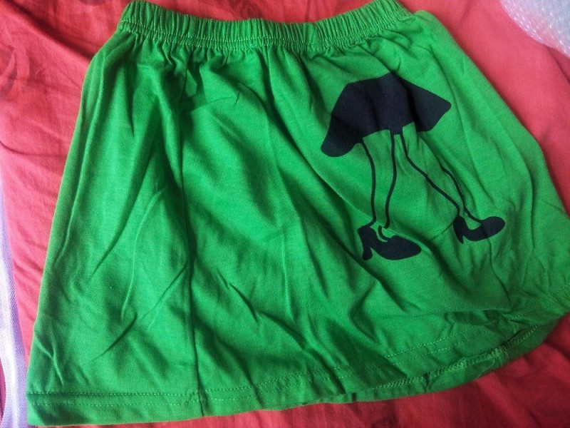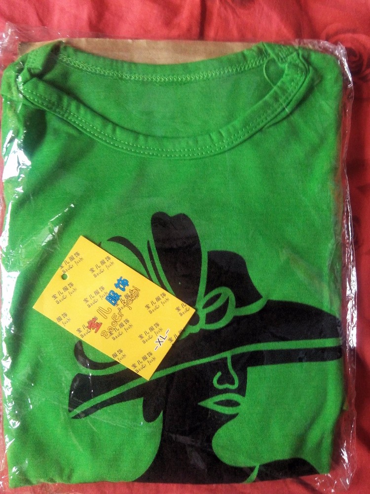 拿回来拆开一看,绿色的颜色挺正的,就是有点皱皱巴巴的,这个到没有什么问题,洗一下就好了,只是我觉得不是纯棉的,有点小失望。上身是短袖,下身是裙子,半身裙,还蛮好看的。一套衣服放在一块的话就可以看到上面的图案,美女图哦,还带着个帽子,脚上穿个皮鞋,哈哈,好有趣的。 还有一套帮邻居家孩子买的才刚刚发货,这个都已经收到了,继续等待下一套衣服的到来,期待中。。。 本作品未经作者许可不得转载,转载请征求作者意见。擅自转载使用,将保留追究其法律责任的权利! 评分记录