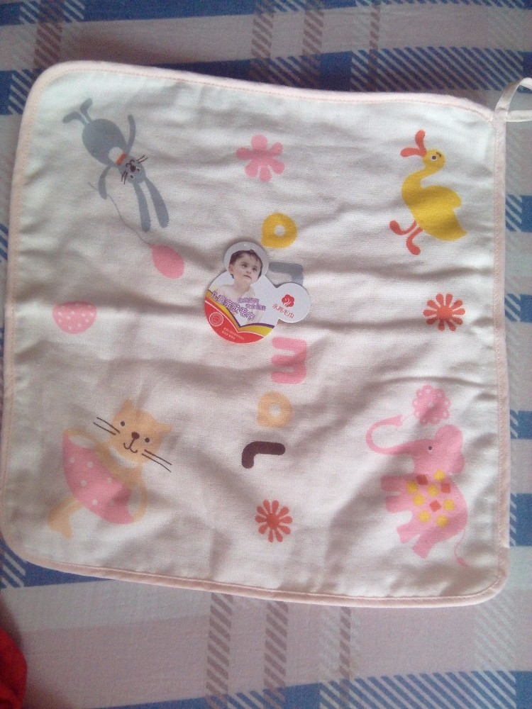 孩子都是备有两条毛巾了,这才扔掉一个,总是忘记买,今天带着孩子出去玩,刚好想起来,本来是打算去婴儿店买的,奈何儿子要去超市,趁着儿子玩的功夫,我就去卖毛巾的货架瞧了瞧,看看有没有适合小丫头用的,比较柔软的毛巾。刚开始看了好几条,价格倒是挺贵的,只是手感觉得不是太好,总觉得有点儿硬,孩子还小,现在用这样的太早了。 继续看了看,都是随手拿过看看,不行就放下,看到有一个正方形的,就是有点儿大,比家里用的大了一圈,倒是跟家里的一样,是双面的,一面是纱布的,一面是纯棉的,这个我还是比较喜欢的,让人有选择性的使用,但即使满意这样的,我还是想看看柔软度,手感觉得挺柔软,又在自己的脸上擦了擦,很是不错,觉得跟我之前在超市买的相差无几。但还是不太放心,就先买了一条,等洗过看看怎样,还是好的话再来买,不行就去婴儿店买。