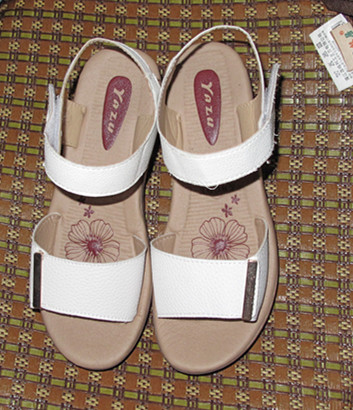![]() 虽然平时都是在家的时间多,偶尔出去也是穿的单鞋,但毕竟夏天已经来到了,还是要穿凉鞋的,家里那双已经穿了两年了,虽然是很普通的款式,只是因为穿着舒服,走再远的路都不会累脚的,包括我出去旅游都是穿的那双洞洞鞋,可见喜欢的程度了。直到去年夏天快结束时,发现鞋底在开始裂口了,最后是勉强把夏天穿过去,也就没买新凉鞋。 可今年就不行了,没合脚的凉鞋穿了,必须要去淘一双了,外面的实体店的凉鞋感觉不是很好看,而且价格都不便宜,象我这种喜欢价廉物美的东西,还是只能在万能的网上去搜索了,经过几天的专心的搜索,还别说,还真的搜索一家了,也就是下面这款凉鞋了。 只是收到的第一时间就把我惊呆了,外包装的鞋盒是如此的破烂不堪,一看就是经不起暴力快递的运输而败下阵来,赶紧就在快递那里打开检查了一下鞋子,还好鞋子是完好无损,真是万幸呀,否则退回去换货也麻烦,我这个人是最怕这些的。 ![]() 这款鞋子有白色。橘色和蓝色的,我买的是白色的,夏天穿白色的比较百搭,款式比较简单大方,不象其它款式一看就是中年妇女穿的,这个至少看起来没这么明显,虽然咱早就属于中年妇女了,但咱也有颗年轻的心呀,要抓住青春的尾巴不放呀。哈哈 ![]() 鞋子是平跟的,1厘米跟的高度,可能是很久没穿带有跟的鞋子,这种一穿上感觉人都高了那么一点点 ![]() 鞋头的前面是园形的,对于我这种脚胖的穿着就很舒服的,鞋里面的内里感觉也很舒服,还有花朵的图案呢 ![]() 鞋带也是懒人似的魔术扣,就和孩子穿的鞋子的鞋带是一样的,其实我就喜欢这种鞋带,穿起来方便又很舒服,不象其它的鞋带那么麻烦的,谁叫我是懒人呢 ![]() 鞋底是防滑的 ![]() 专门上脚试穿了,我买的38码,大,小正合适呢,其实最开始我拍成39码了,后来想想不能拍这么大的,凉鞋必须是合脚才行的,而且穿久了会松些的,所以我还特地叫客服帮我改成38的,其实在没生孩子前,我都穿37码的,甚至是36码也可以的,那知道生了孩子后,人也越来越胖了,脚也就跟着长大了,哎,生个孩子什么都在改变呀。