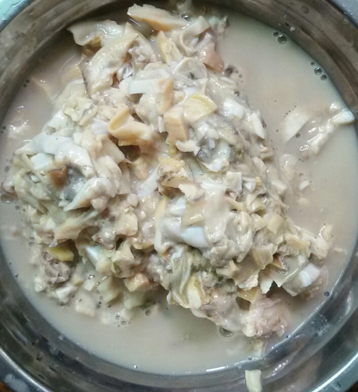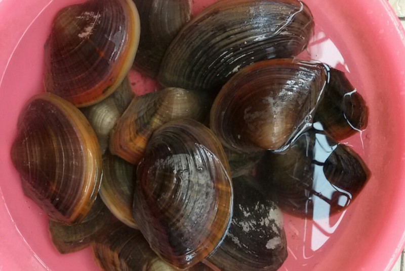 ![]() 上次回乡下时,刚好碰到干塘,所以在回来的时候我们又捎了山泉水养出来的河蚌和本地塘虱回来,可由于当时我们还不想马上食用河蚌,所以我们就把它放在盆子里养几天,顺便把河蚌身上的泥土都养干净。养了近一周,加上宝爸的眼睛有点小问题(眼白红红的,老出眼屎),然后我就叫宝爸处理了它们,然后打算用来煮河蚌粥。河蚌,又名河歪、河蛤蜊、鸟贝等,有滋阴平肝、清肝明目、生津止渴等功效。考虑到单纯用河蚌来煮粥,味道可能不太好吃,然后宝爸就加了一些绿豆和枸杞子进去一起煮了。虽然宝爸是第一次做绿豆杞子河蚌粥,但由于河蚌是山泉水养出来的,再加上处理得干净,所以煮出来的河蚌粥非常的鲜美和可口,深受我们的喜爱。