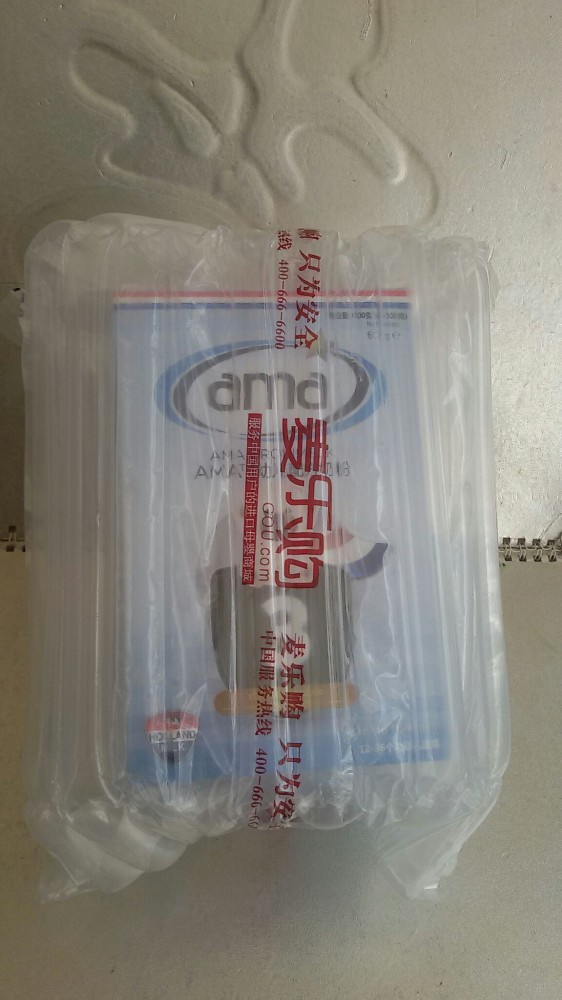 可想不到简简单单的一个小举动,我就意外的中奶粉了,所以我特别的高兴,小不点知道后也整天嚷嚷着要收人家寄来的奶粉,甚至在我每次收试读寄来的书时小不点都把它们想象成装奶粉的纸箱,一下楼收快递小家伙就认定它是用纸箱装的快递,我知道,这是因为他想收奶粉的缘故。盼星星盼月亮,盼到五一劳动节时,我们终于收到了商家寄来的AMA奶粉,小不点一看到这纸箱就知道它是奶粉了,然后嚷嚷着要自己来拆包装。可由于商家包装得比较严实,所以我得用剪刀剪开重重的透明胶才能把纸箱打开,打开后又发现整盒的奶粉竟然用充满空气的塑料管管严密包裹着,光从包装上我就能感受到商家的用心和细心了。