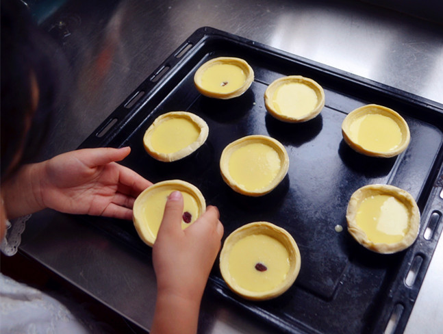 ![]() 烤箱大概闲置了有半年了吧,越闲越懒越不愿意去做,前些日子还答应妞儿做饼干,可是一犯懒又没做成。。。想想感觉自己真是“罪孽深重”,所以趁着这个周末,赶紧着给家将功补过,做点美食慰劳慰劳人家~ 奶油和蛋挞皮是上周同事去水鲜城买烘焙材料,让她们顺道帮我带的。同事爱吃披萨,去芝士什么的,我和妞儿都不爱吃,我们就只买了点黄油蛋挞皮和奶油。水鲜城的价格比淘宝同城卖的要便宜,以前我都是图方便网购,看来以后我也要多跟同事去逛逛,又省钱又减肥。 ![]() 蛋挞以前没少吃但自己一次也没做过,不过看网上教程很简单,就是把几种原料混合搅在一起就好了。妞儿放学以后跟她说要做蛋挞吃,这丫头劲头比我还迅猛,拉着我就往家里跑。 奶油和牛奶需要称量,妞儿在一边插不上手干着急,等到我弄了两个蛋黄,她赶紧问我,这个能不能让她来搅?来吧来吧,赶紧干吧,呵呵,小吃货还喜欢动手自己做,等她长大点估计我也能吃上她做的甜点吧。 ![]() 蛋挞液是在网上找的方子,8个的量,做出来刚刚好,一点也没浪费。而且烤出来的味道非常棒,挞皮香香脆脆,挞液软软嫩嫩,咬在嘴巴里回味无穷,两个字,好吃! 我们在里面放了几颗蔓越莓,也可以放些葡萄干或者果酱,下次我们计划放些水果,味道应该也会超级棒。忽然一下又找到了自己动手的乐趣,看来以后我们可以重操旧业,多做甜点喂足我们家的小吃货~ 附蛋挞简单做法,8个量,很方便: 材料:牛奶80克,细砂糖25克,淡奶油180克,鸡蛋黄3个 1. 拿出挞皮拿到室内回温 2. 锅中放入牛奶,奶油,白砂糖 3. 小火煮到白砂糖融化不用开,静置放凉 4. 蛋黄加入低粉搅拌均匀。倒入牛奶液 5. 过筛两次,过筛后,把表面的大气泡用小勺去掉 6. 倒入挞皮内八分满!放入烤箱预热200度上下火15-20分钟 ![]() ![]()