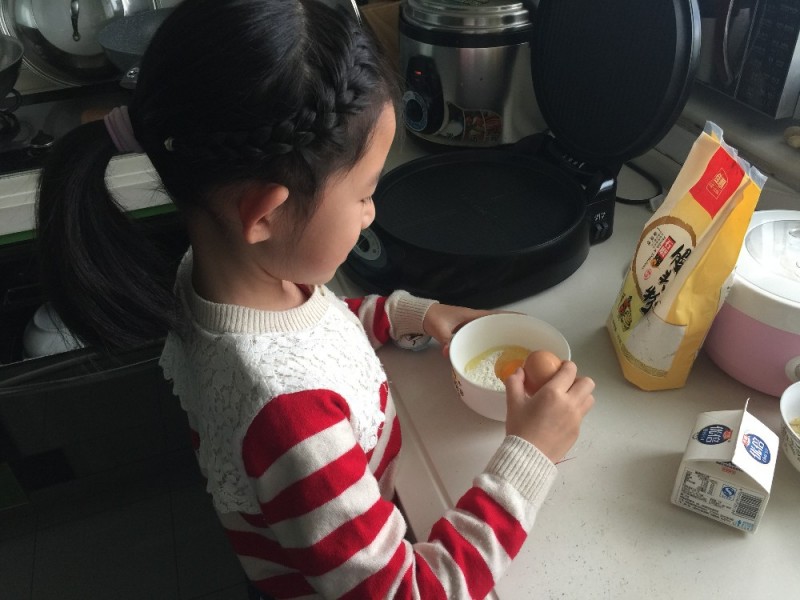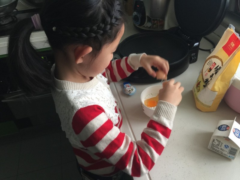 母亲节,婠婠就为了做了很多事情。我做饭的时候,她也是忙前忙后,帮我理菜洗菜,吃完饭还抢着洗碗。虽然婠婠平时也很乐意帮我做家务,但这一天可是特别积极。最感动的是,母亲节的早餐是婠婠准备的。其实婠婠一直对做学做菜很感兴趣,我也觉得孩子不小了,学会做饭是生存的本领,而且我自己也是挺喜欢做吃的,当然希望婠婠也能学得一手好菜。所以平时做一些简单的菜,我就让她动手。不过到现在为止,婠婠还是不敢点煤气灶,每次都都是慌手慌脚,火一点着,就闪得远远的,不知道什么时候能克服这个困难。不过这也不是大事,先从简单的学起,比如切菜,怎么把菜炒熟炒好,点煤气灶慢慢地就会了。