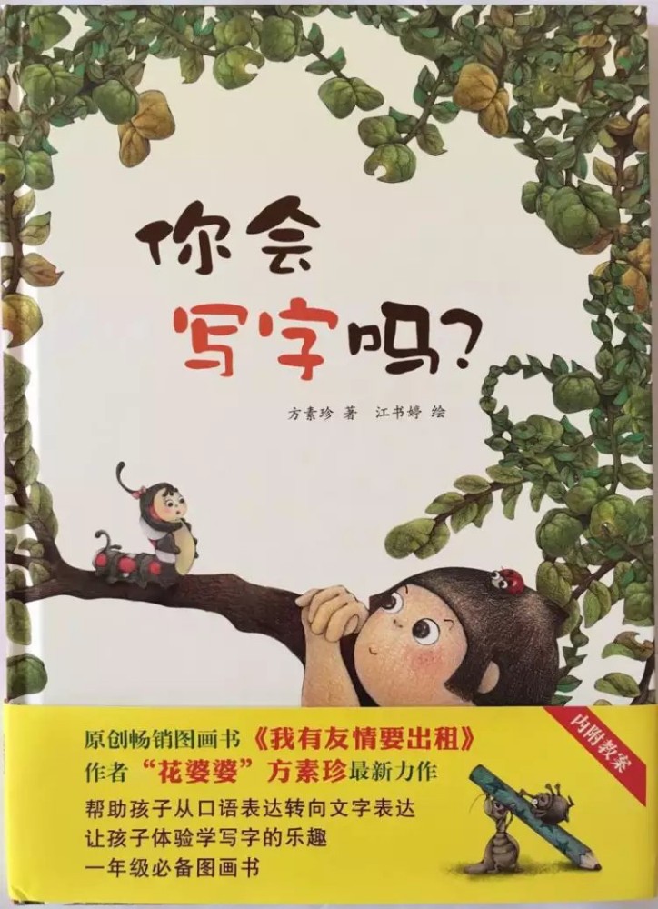 ![]() ![]() 来自新疆青少年出版社出版,由素有“花婆婆”昵称的台湾儿童文学作学方素珍老师携手台湾画家江书婷共同创作的精装绘本《你会写字吗?》历时两年半可谓是“慢工出细活”,其原型是一首“不学写字有坏处”的童诗,也是方素珍老师创作的。说到方素珍老师,小妞并不陌生。她对这位“花婆婆”不管是创作的图画书亦或是翻译的作品都如数家珍,《米莉的帽子变变变》、《故障鸟》、《许愿的小星星》,《妈妈心妈妈树》、《我有友情要出租》…… ![]() 《你会写字吗?》顾名思义这是一本与“写字”有关的绘本,也是对于即将迈入一年级成为小豆包的孩子们来说有着特殊指导意义的绘本。阅读前我就书名也问了小妞一遍:你会写字吗?小妞不假思索地回答:会啊。在她看来,写字并不是一件很难的事情,事实上她会写的字不多。小妞现在就读公立幼儿园大班,下半年就要成为小学生了。幼儿园的教学重点以玩为主,以学为辅。因此拼音、识字、写字这些是还没有开始普及的。孩子的识字是在我们平时的阅读过程中慢慢积累起来的;至于写字则是她照着字体自己拆解、拼凑写成。我曾经很纠结是否要纠正孩子写字的顺序,因为我看到她写字时笔画不规范,顺序也不对。但转念一想,她浦学写字源于自己的喜好和自己感兴趣,如果我用自己的方式来教导她该怎么写,这岂不等于就是在提前教她写字了?我不想用自己的教化方式过早开启孩子写字模式,一旦孩子在这过程中失去了兴趣,那么她到读小学时就会认为写字是件索然无味的事情。 孩子学写汉字,是个基本功,也是一件需要长期训练的事情。就像练习舞蹈一样,需要有基本功打底做为基础才能衍生出更多动作。写字的基本功就在于掌握笔画和顺序,同时还需要对空间位置有一定的概念。即是说孩子需要对上下、左右、前后等空间位置清楚了,才能把字写好写完整。对于初学写字的孩子来说,写字是很枯燥且感到无聊的一件事,也因此许多孩子出现不爱写字、写字慢等问题。就像这本书中的小主人公小珍珠一样,只见她斜靠在椅子上,两只脚丫子不安份地踢掉鞋子,一脸闷闷不乐样,原来她在写作业,一边写一边抱怨着为什么要学写字呢?手酸死了!于是乎,这才写了三行字,她的小脑袋瓜就开始“游离”了。比起写字,瞧小珍珠这各种奇形怪状模样,可把我家妞给逗乐了,你说小朋友们这天马行空的想象力可真够有趣好玩的! ![]() ![]() ![]() ![]() 恍惚间突然来了只蚂蚁,把小珍珠给吓了一大跳。原来是切叶蚁先生啊!他让小珍珠帮他传递信息给毛毛虫小姐。而这信息的方式是极其简单的,只见切叶蚁先生在叶子上“咔嚓、咔嚓、咔嚓”咬了三个洞,这就是他写的信了!这可把小珍珠考倒了,她看不懂这三个洞是什么意思啊!不过不要紧,毛毛虫小姐一看就知道的,切叶蚁先生说。于是好奇的小珍珠就这样当起了邮差,把信送到了毛毛虫小姐家里。阅读进行到这里时,也来请我们的小朋友”脑洞大开“想一想切叶蚁先生所要表达的是什么意思呢?小妞说了几个答案,有:对不起、好消息、好朋友、你好吗?居然还有个”我爱你“!把我惊呆了!细问之下她说的”我爱你“是指俩个人关系很好,要做一辈子的好朋友的意思啊!那么毛毛虫小姐接到信后是否明白了切叶蚁先生所要表达的意思呢?左瞅瞅、右看看、正面看完再看反面表示看不懂哪,我们的毛毛虫小姐显然也没明白三个洞是什么意思?于是她生气了!她认定是切叶蚁先生在骂她是“猪八戒”!因为他俩早上吵架了!她决定“以牙还牙”,在叶子上咬了四个洞,让小珍珠把这封信代送给切叶蚁先生。这下小珍珠“摊上大事”了,因为她也看不懂毛毛虫小姐的意思,而切叶蚁先生也认为毛毛虫小姐骂他”大坏蛋!“还是加上感叹号的!这一场乌龙闹剧啊,源于俩个小伙伴不会写字才导致了一场误会啊! 愁眉苦脸不想写字、吐槽抱怨的小珍珠 意识到写字能够传递内心要表达的意思,也可避免不必要的误会之后,小珍珠迈开大步朝前走 ![]() ![]() 我们再来看看小珍珠前后的变化。在开篇第一页时,我们看到的是一个愁眉苦脸为写字吐槽抱怨的小女孩,而在经历为切叶蚁先生和毛毛虫小姐当邮差送信后,小珍珠是迈开大步朝前走,没错她这是要回去写作业!这前前后后明显的对比,看得出小珍珠意识到写字的重要性!她可不想因为不会写字引起误会啊!在书的最后一页,我们看到左边是小珍珠的同学提笔为她写信,右边是小珍珠正认真地阅读着朋友给她的信,而环绕四周的那些小虫子们依然在咬着大大小小的洞。整篇故事从开始到结束,始终没有出现她的爸爸妈妈、老师,这也说明了大人不用过多的干涉和说教。当孩子用自己的方式、自己的领悟明白了什么是要做的,那么她就不会把写字当成压力,当成苦差事,更不会觉得是件痛苦的事情了。 前面说过这本书历时两年半的时间,源于方素珍老师对于画作的”高要求“,最终在她的建议下,江书婷以色铅笔为主、电脑为辅,营造了温馨快乐的感觉,全书阅读完我们会对里面的人物,还有这些小动物们:切叶蚁先生、毛毛虫小姐,还有被小珍珠当”发夹“的小瓢虫等有着别样感受。包括一直贯穿每一页的两只”小角色“——小螳螂和独角仙。虽然它们不起眼,却在画面角落起着点睛的作用,也是作者与绘者的别具匠心之处。小螳螂和独角仙在整个过