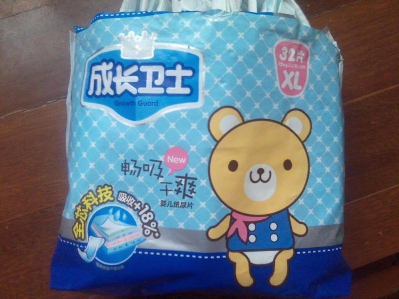 然后我就好好的看了一下,XL的尿片一包32片,这包被拆开过,不过看了下还是挺多的,应该也没有用过几片,是成长卫生这个牌子的,之前有给女儿买过,我觉得还是挺好用的,薄款的,刚好现在天气越来越热了,现在用刚刚好。我家丫头用L码的尿片,家里的快用完了,我也不打算再买L码的,孩子调皮,容易掉下来,XL的稍微长一点,用着刚刚好。另外还有一片单独包装的尿片,是试用装L码,马就拆开给孩子用,保质期三年,可以放心的使用的。