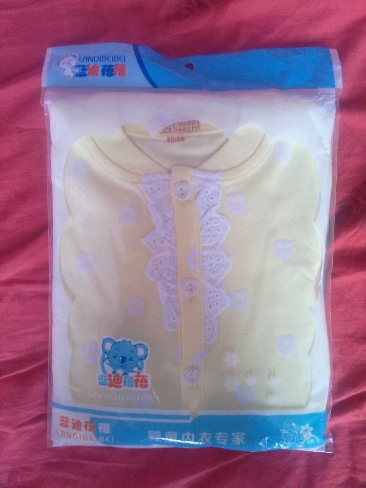 上网看了好久,看到一套内衣,相当于还是秋衣秋裤,只是是薄款的,而且它的样式也比较漂亮,上衣的面前是带蕾丝的,但是孩子不会接触到,我当时看到图片一下子就喜欢上了,也询问了买过的人,说质量比较好,纯棉的,孩子穿着很舒服,尺码也是很标准的,我就放心大胆的买啦。