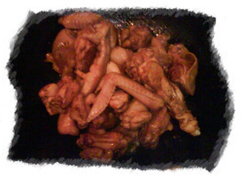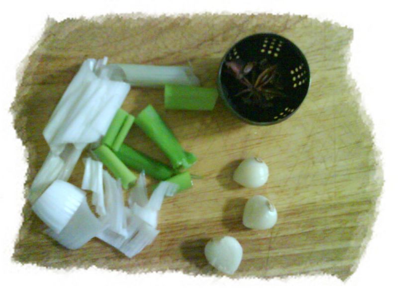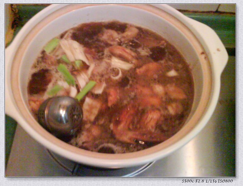 把鸡剁成小块,还真费劲,骨头真硬,看着我艰难的进展,虎头姥姥实在忍不住了,接手了,几下搞定,姜还是老的辣,不愧是浸淫厨艺几十年的高手, 然后开始切葱蒜等配料,又放上大料、花椒做了个调味包 下面开始上锅翻炒,少许老抽,看颜色多漂亮 关火,放砂锅,加入半锅水,放入调味包,蒜,大葱,倒入炒制好的鸡肉,由于鸡比较瘦,我是连油一起到入的 最后放入笋丝、木耳,盖上锅盖炖25分钟左右,放盐,再炖5分钟就差不多了,黑白相间香气四溢,还是非常不错滴 成品展示图,看着很香吧,吃得更香,呵呵 然后再配上尖椒炒丝瓜,碧绿碧绿的,肉片熬红萝卜菜花,红白相间,很漂亮吧,这就是全家的午餐,虎头很捧场,菜花、红萝卜、鸡肉都吃了不少,八月秀厨艺成功