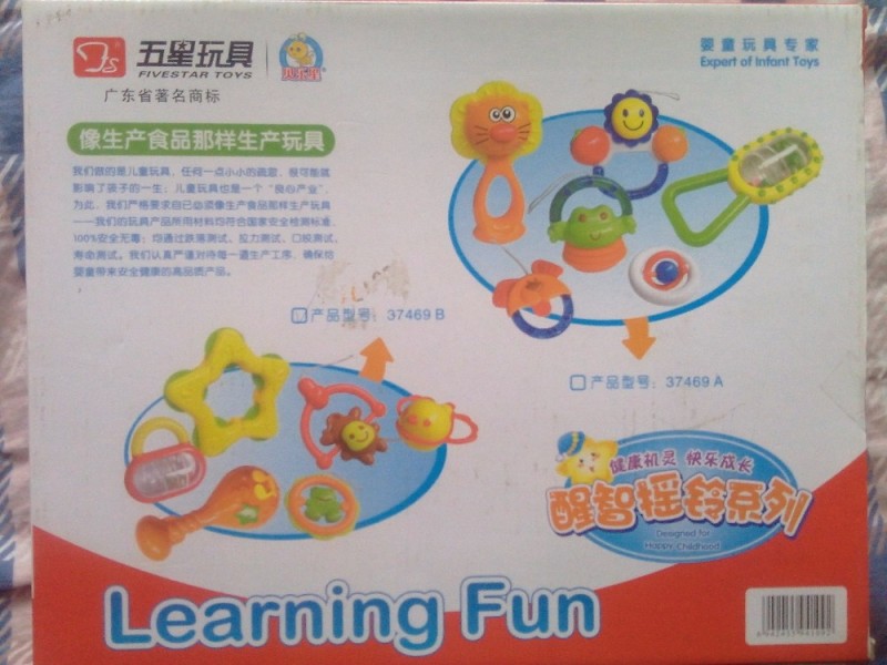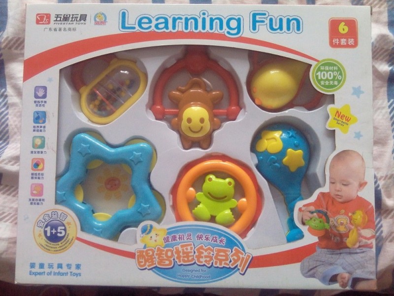我没有认真看过玩具区有什么?倒是我妈说有摇铃,跟我儿子小时候玩的一样,我上午带着大宝去买玩具,儿子的很快就挑好了,我转了一圈,愣是没有看到我妈说的摇铃,后来又转了一圈,看到了一个笑拨浪鼓,只有七八块钱,再打折的话就更加的便宜了,我都准备带着儿子去付账了,没想到就这么看到了摇铃套装,6件套的,24.5元,价格还可以,我就买了。
