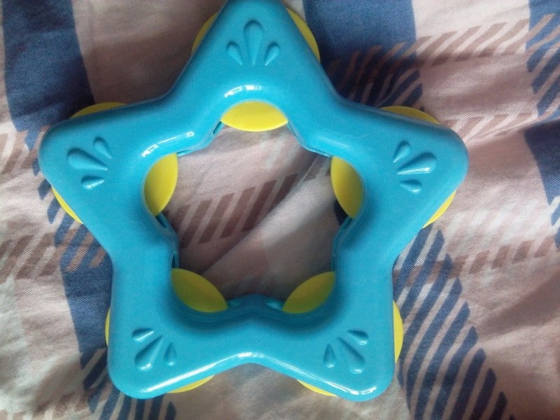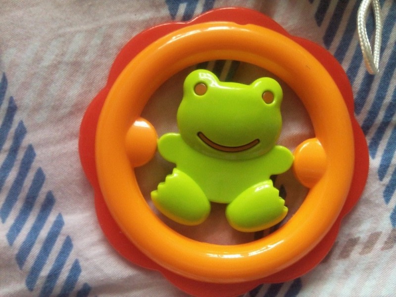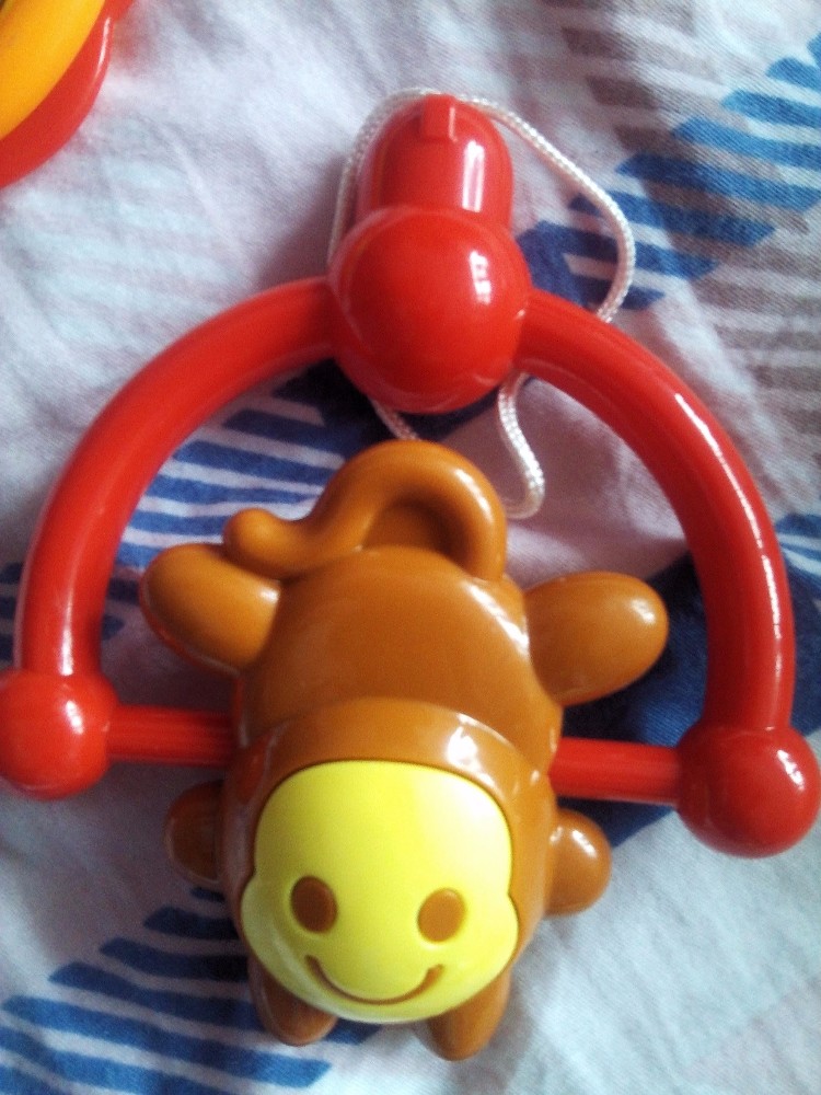 回家就迫不及待的拆开了,拿给女儿玩,一个五角星的那个摇铃,儿子小时候我也给他买过,我记得好像玩了好久,大了之后看到儿子还玩过,觉得有意思;小青蛙造型的摇铃,很可爱,颜色也艳丽,小青蛙还会上下的翻滚,挺有意思的,小猴子的摇铃跟小青蛙是一样的,就是颜色和形状不同而言,也是可以翻滚的,有趣。