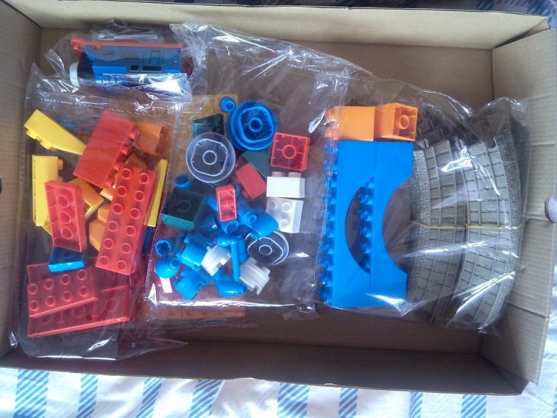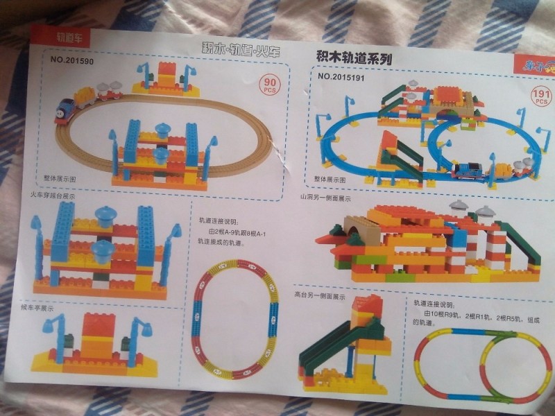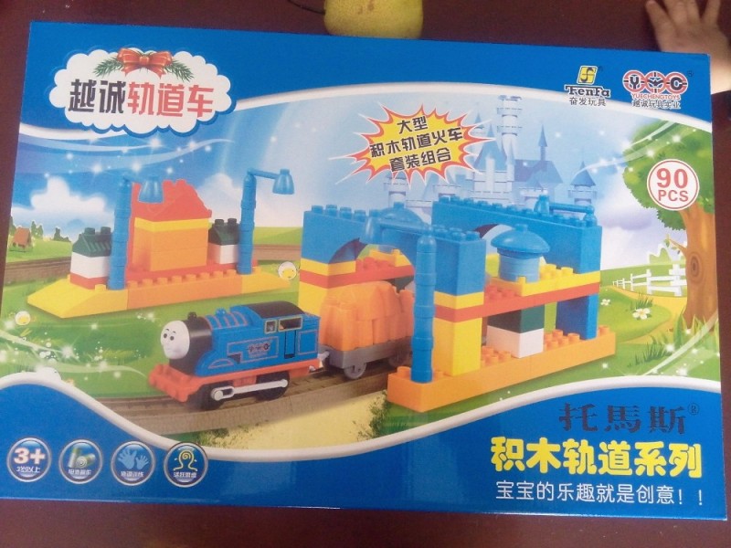 到那儿子就要买小火车托马斯,后来我看了下还是积木,但这个是适合3岁以上的,刚好适合我家小子这个年龄,跟儿子再三确认了,告诉他这个也是积木,孩子表示知道,依旧要买这个,我就同意了,本来这个标价是90元,打折下来相当于55元,还挺划算的,我买的这个是90片的,看说明书,这个是一个系列的,还有的数量比较多,只是我们在超市只看到这一种的。我本来还担心这次买的还是小的,后来等拆开后,看到积木还是比较大的,我才算放心,真怕又买了个难拼的积木,要是让孩子觉得有挫败感,可是得不偿失了。