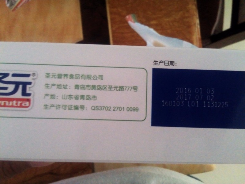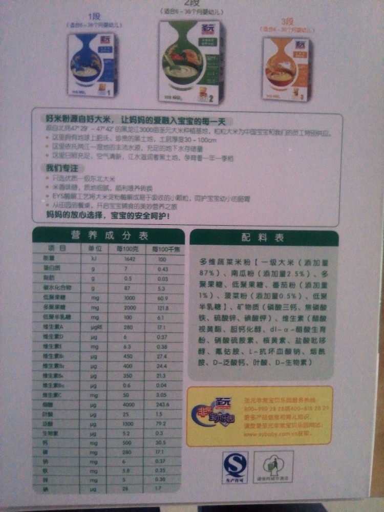 昨天说买米粉的,给忘记来,后来下午带着儿子去了超市,看了看,我去的那个超市只看到圣元的米粉,有几种口味,有鱼肉的,这个我怕会腥,直接pass掉,还有一种是胡萝卜口味的,后来我想着蔬菜的不错,就看了下生产日期,上面标注的是今年16年1月份的,日期还是蛮新鲜的,到明年17年7月份才会过期,后来又看了一下其他两种的日期,还是多维蔬菜的这种口味是最新鲜的,本来我想买的就是多维蔬菜的,对比了一下日期,自然还是选择了多维蔬菜的
