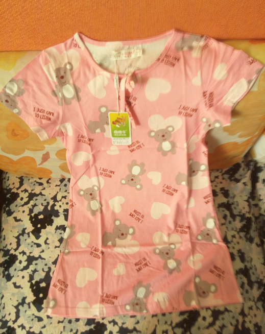这样的款式和面料真是挺不错的,图案也是小朋友们喜欢的小棕熊,妞妞看了很喜欢。我收到了就下水洗上了。完全不掉色,也没有什么味道。下午就干了,妞妞晚上穿着和别人视频聊天什么的都很不失礼。