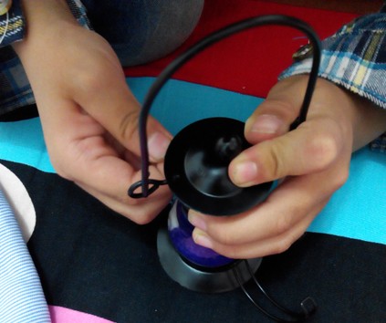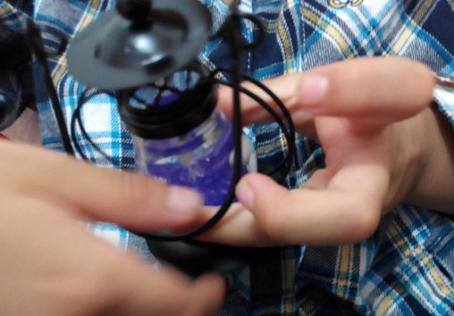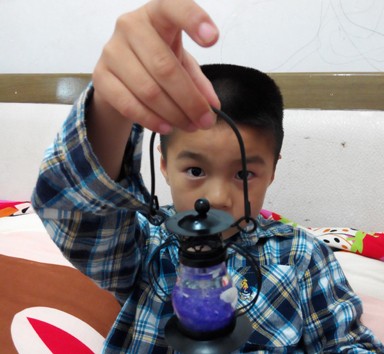 里面的蜡烛是非常软的,孩子还用手扣了几下,所以蜡烛也被扣的变了一点形,不过这肯定不会影响到使用的,我看到里面的紫色蜡烛有一个细细的白色的线芯,只要把这个点燃就好了,看起来非常的方便,点燃之后然后再把卡口对准安好,这样的话,里面的灯火不会烧着东西,放在任何地方都会比较安全,而且孩子也可以提着走路,因为底部是特别平稳的,所以也不会担心会倒掉,比我们平常使用的蜡烛要安全的多,只不过不知道里面的紫色蜡烛是不是普通的蜡烛,看起来买这个蜡烛不太方便呢。