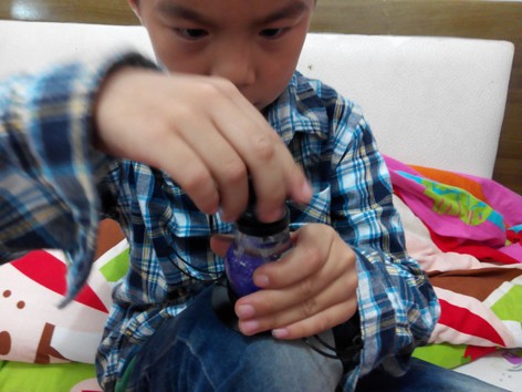 现在的工艺品真是越来越精致,就连孩子们用的小蜡烛都能够做的如此的漂亮,而这个蜡烛灯还是晨晨的表哥送的,一开始的时候,我真的不知道这是干什么的,所以才知道原来可以当成灯使用,而里面紫色的就是它的灯芯,是不是非常的可爱呀,并且这个小灯还可以自己卸载掉然后重新装好,不仅能够使用还可以提高自己的动手能力,实际上这种蜡烛灯早就有了,只不过我平时从来没有在意过而已,晨晨的表哥送来的时候才发现真是太可爱了。而晨晨也把这个当成了玩具来使用,因为现在暂时还用不到这个灯呢。