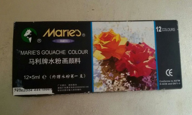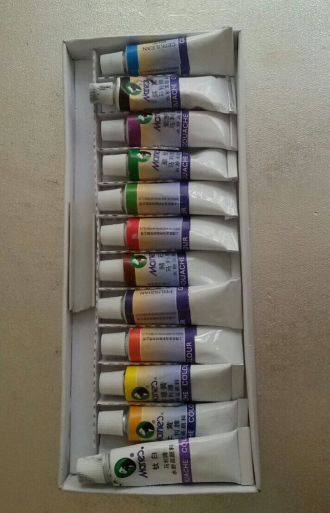 其实,我也是第一次买这种水粉颜料,而且是12色的。回来与书对照一下,我觉得我应该买24色的,这样更全面一些,颜色也不会太单调。