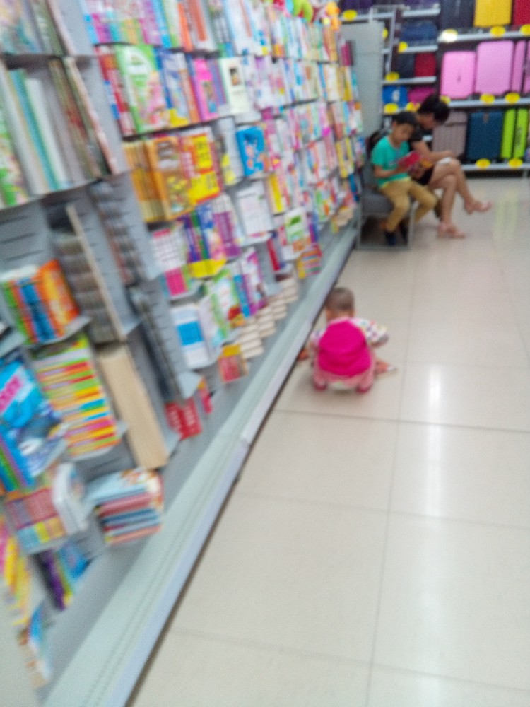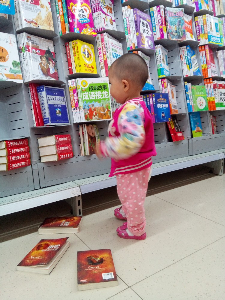 坐完这个晃晃车,我就带着宝宝去超市了,我们这个超市还算是挺大的,尤其是二楼有一个读书的架子,架子旁边还放了一个凳子,是让顾客休息和坐着看书的,考虑的非常周到和人性化,好书就是不怕人家看,这个态度,真是帅爆了。
