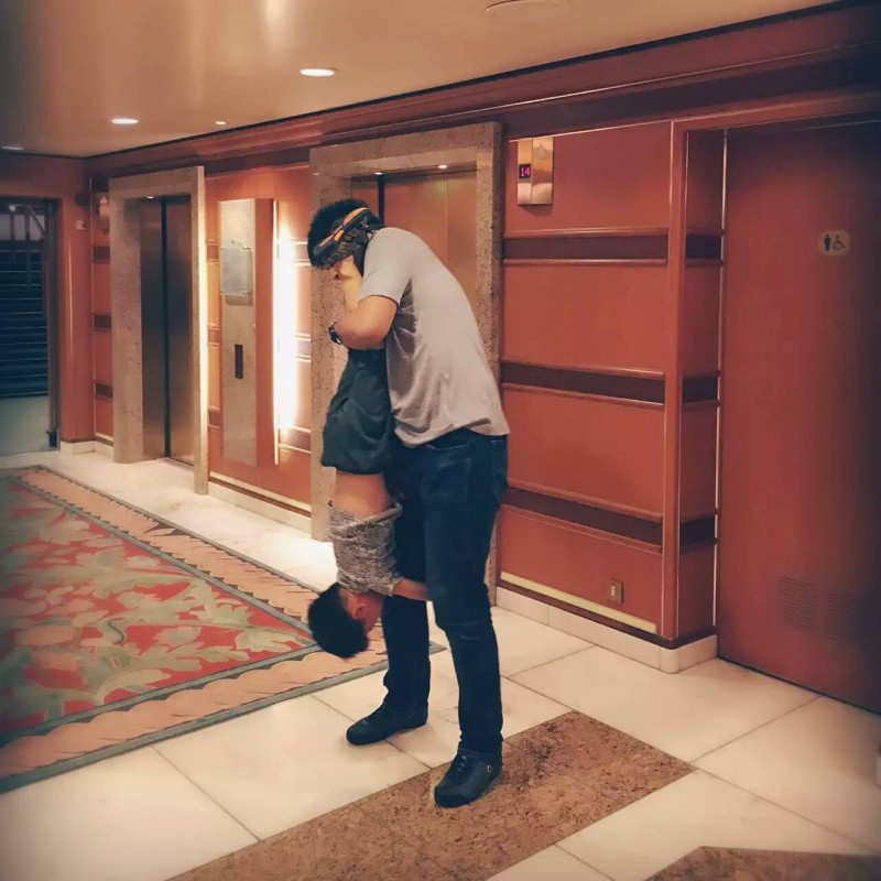 虽然这张照片把两人都拍得有点失真,但看父女俩搞笑的表情,还是觉得挺有意思的。