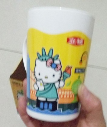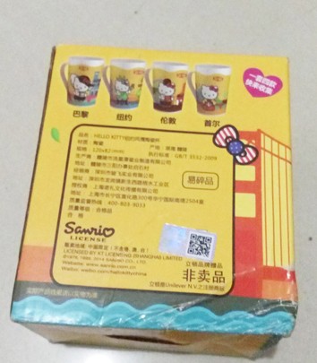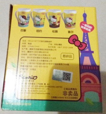 这种马克杯是非卖品,所以在盒子的上方就写着非卖品,当然非卖品也无所谓,看到了背面的图案就知道原来是巴黎、纽约、伦敦、首尔这四种样式,实际上每一种马克杯的区别非常的小,也就是背景图案的不同,不过看起来都是非常的可爱,盒子是黄色的颜色,看起来挺鲜亮的呢,因为马克杯是易碎品,所以一定要轻拿轻放,每一个杯子的含量都是一样大小的,这种马克杯的容量不是大容量的,比较适合孩子用好一点,打开外面的盒子,会发现里面的杯子非常的可爱,杯子的上半部分是白色的,因为上半部分我们嘴巴是直接接触的,白色会比较无污染干净一些。