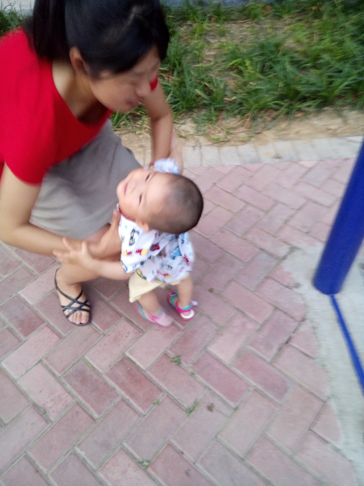 抱着宝宝往家里走,突然起风了,刮起来特别凉爽,真是舒服。最近几个星期,天气预报一直都说有大雨,可是一滴都没有下,每天都是闷热的难受,晚上更是不好安睡,弄得心情比较烦躁,这会风刮过来真是心旷神怡的。老公径直往屋里去,我建议这么好的温度带着宝宝在外面多玩一会吧。老公就抱着宝宝去健身广场玩了。