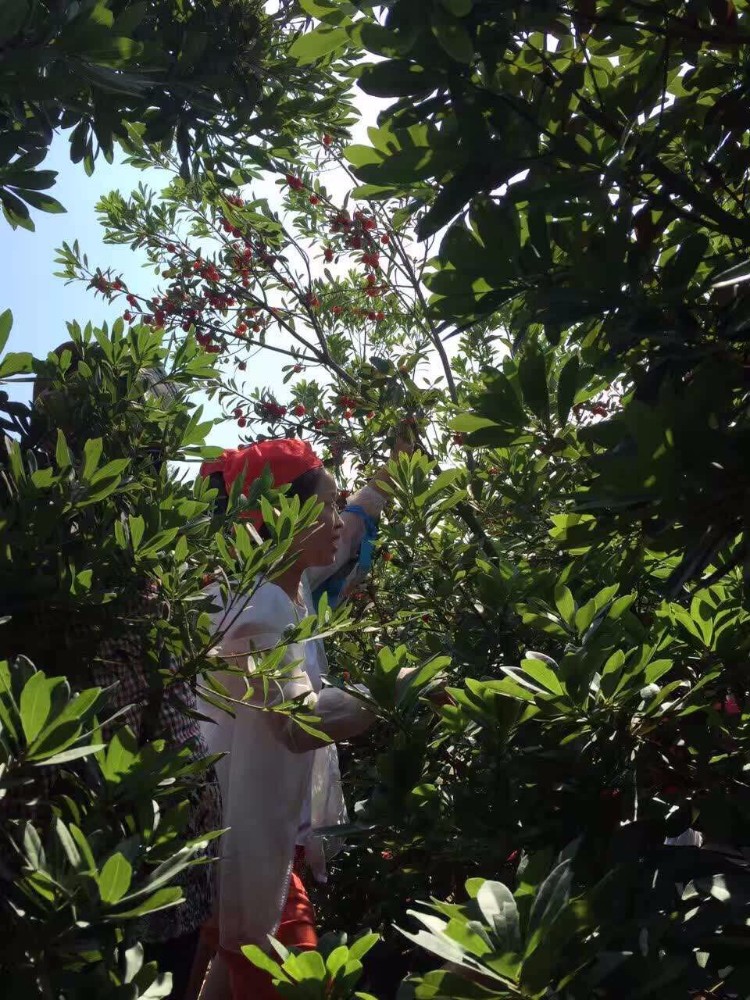 天气好起来了,带上梯子,和小朋友们一起去采杨梅了,杨梅圆圆的,玫红色的,看起来就是酸酸甜甜的,我们尝一个试试看,,还是蛮甜的呢,有的小朋友已经迫不及待了,尝了一个不熟的,眉头都皱起来了,大叫起来:“好酸啊.”谁让你自己随便吃,也不问问哪个好吃哪个不好吃的。快乐的时光总是短暂的,每个小朋友都收获了不少杨梅,我也得到了一些,吃起来很爽口呢。 ![]()