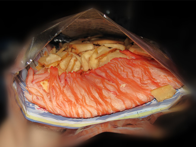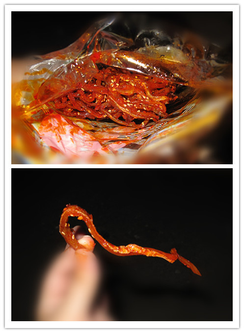 麻辣的这个应该是鱿鱼丝,我们这边通常是这样做! |