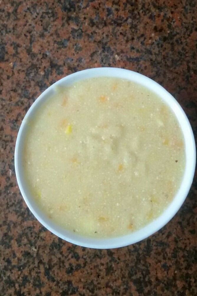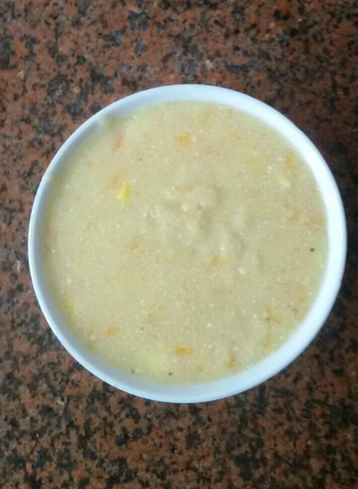 以下是宝爸教我做玉米糊的方法: 材料准备(三人量):玉米粉50克、水、胡萝卜50克 步骤: 1、 胡萝卜去皮,洗净,然后擦成丝,备用; 2、 取玉米粉放入盘子里,然后加入适量的清水搅匀,然后倒入锅内煮,煮的时候最好久不久用勺子搅拌一下,以免玉米粉沾在一起; 3、 水煮以后加入胡萝卜丝和适量的花生油,然后继续煮至粥熟; 4、 调入适量的食用盐即可关火盛出食用。 虽然玉米糊卖相不怎么样,但味道还是非常的美味,平时吃饭特别慢的小不点可喜欢吃了,很快就把一小碗的玉米糊都吃光了。