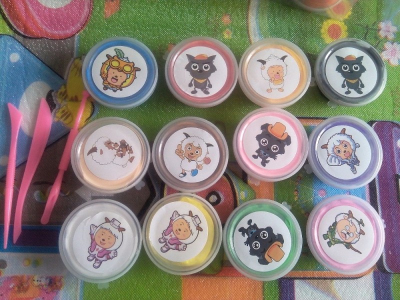 收到的超轻粘土是12色的,两盒,里面各有三件小工具,小工具是粉红色的,小子一看到这些就非常的高兴,催促我帮他打开,他好玩起来,看着小子心急的模样,我就给孩子开了一盒,盒子上面还有喜洋洋灰太狼的图片,嘻嘻,这个小子有好一段时间是非常的喜欢的啊,还有小灰灰哦,十分的可爱。