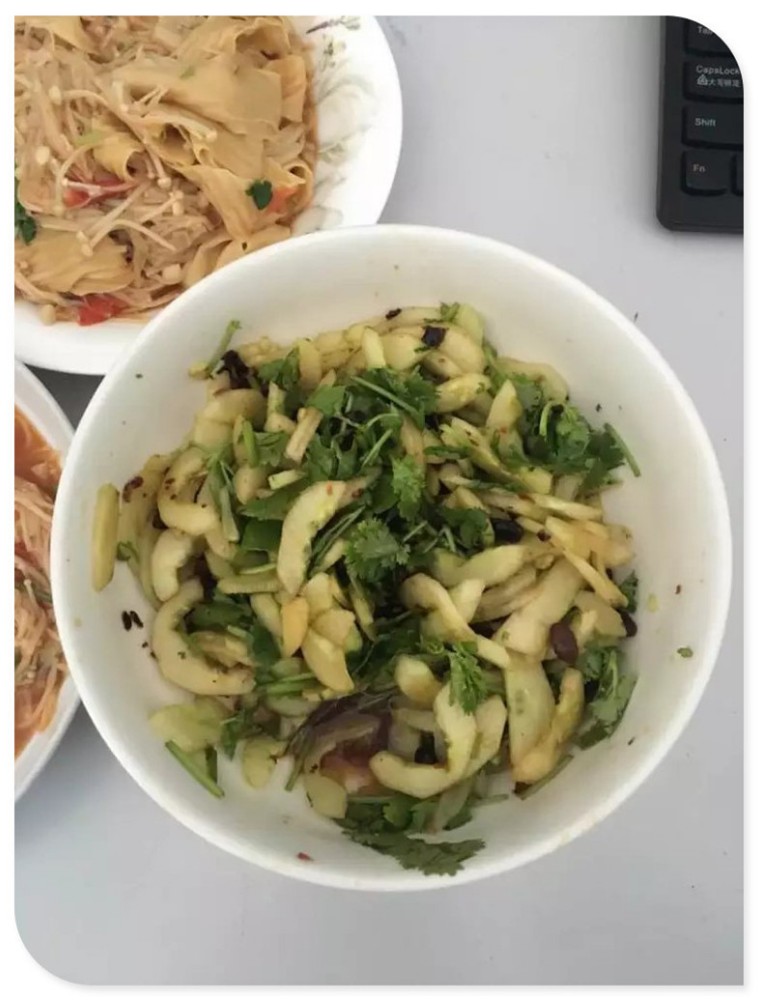 公司有个小型冰箱,这样方便储存蔬菜、水果之类的。合伙煮饭就需要进行分工合作了,同事A负责买菜,她来得早就先到附近的生鲜超市买菜,或者直接就在她住家楼下买完菜隔天提到公司。同事B负责切菜,我负责打打下手,洗洗菜什么的,另外一个同事则是负责刷锅洗碗,不过我们也是采取轮流式的。第一天煮了米粉汤,清淡很适合夏天;第二天米饭配汤;第三天就是散伙饭了。不是我们四个人当中闹别扭了,而是公司基于安全考虑让我们尽量带饭过来用微波炉加热,因为夏日用电高峰,且这租赁场所的房子线路也的确有老化现象了,为了用电的安全也就作罢了,于是就有了这散伙饭了。于是这天我们就把所有能得上的食材都用上了,炒饭,再来一个凉拌菜,最后是汤,好好享用这最后一餐合伙煮的饭吧。 青椒玉米鱼卷炒饭,还加了味西红柿,也是先煮好饭再来拌炒的 ![]() 简单炒了个菜,金针菇与西红柿还有豆皮大杂烩哈,味道也挺好的 ![]() 凉拌菜——凉拌青瓜,用的豆瓣酱,撒上香菜叶真是超爽口又美味啊 ![]() 也是一道非常清爽的汤——青瓜丸子汤 ![]()