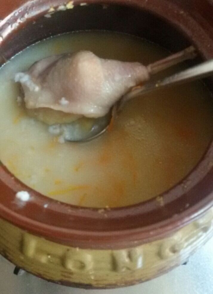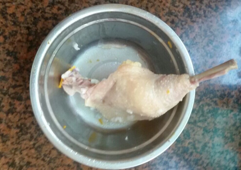 话说上个星期宝爸从乡下捉了一只老母鸡回来,而这只老母鸡由于养的时间比较长,所以足足有五六斤重,而我们几个都不是特别爱吃肉食的人,所以这个老母鸡被我们吃了好几顿。 鸡脚鸡翅膀和鸡骨都用来煲汤,煲出来的汤特别的鲜美,可好喝了。剩下的就是鸡腿和鸡胸肉了。考虑到鸡肉比较老,所以我就取了一只鸡腿来煲胡萝卜山药粥,本来是应该把鸡腿斩块后再与粥一起煲的,但俺是个懒人,加上不习惯早餐时吃鸡腿,所以我就干脆把整只鸡腿都放到粥里去煲,本以为这粥的味道不怎么样的,想不到这粥却非常的鲜美和清甜,令人越吃越想吃,也特别合的我们的胃口。