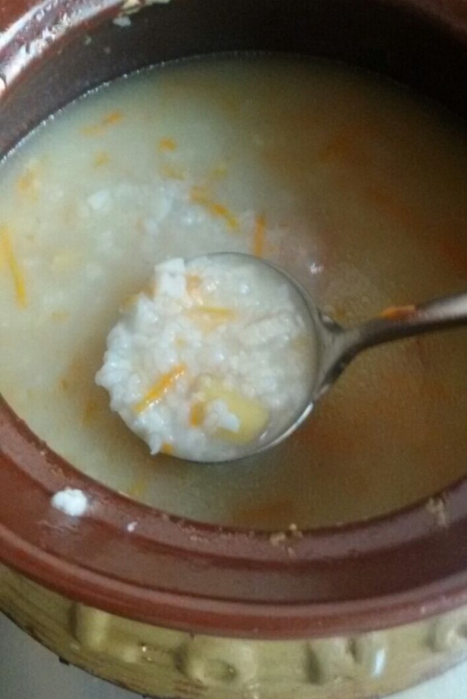 剩下的鸡胸肉我直接用来炖冬菇了,因为这鸡肉比较老,所以我足足炖了近四十分钟才炖好。幸运的是,这肉的味道还是蛮不错的,尤其是吸收了鸡肉精华的冬菇,又滑又香的,特别的好吃,我们几个都抢着吃。 胡萝卜山药鸡腿粥的做法 材料准备: 胡萝卜半根、山药200克、鸡腿一只、生姜三片、大米适量 步骤: 1、胡萝卜半根、削皮,擦成丝,备用; 2、山药洗净,削去皮,拍碎,备用; 3、鸡腿洗净,用开水焯一下,捞起备用;生姜洗净,备用; 4、大米洗净,然后和上述所有材料一同放入砂锅内,一次性加足清水大火煮,水煮开后调小火煮至粥熟,关火; 5、捞出鸡腿,调入食盐拌匀即可食用。
