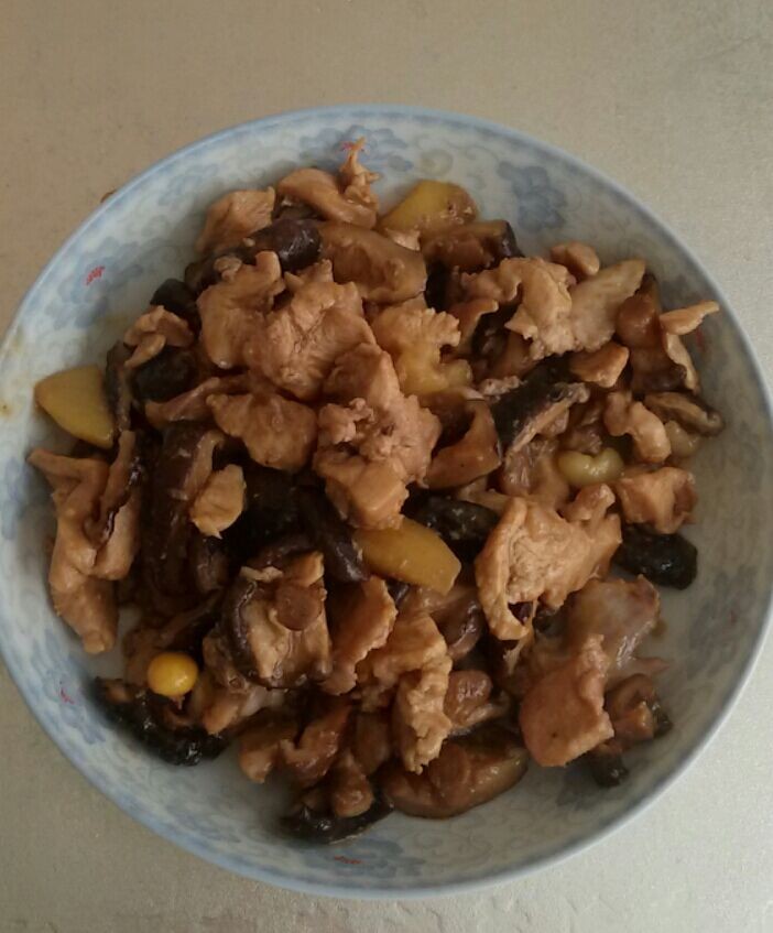 冬菇焖鸡的做法 材料准备: 冬菇30克、鸡胸肉300克、生姜、葱头适量 步骤: 1、冬菇洗净,浸泡半小时,捞出切小块,备用; 2、鸡胸肉洗净,切块,备用; 3、生姜洗净,切成片,备用;葱头去外衣,拍碎备用; 4、锅烧热,加入适量的花生油,然后加入葱姜爆香,然后加入鸡胸肉和冬菇片翻炒一下,然后加入适量的清水中火焖,焖至汤汁差不多干时再加入生粉水(由酱油、蚝油、生粉、和水组成)煮至汤汁收干,然后关火盛出食用。