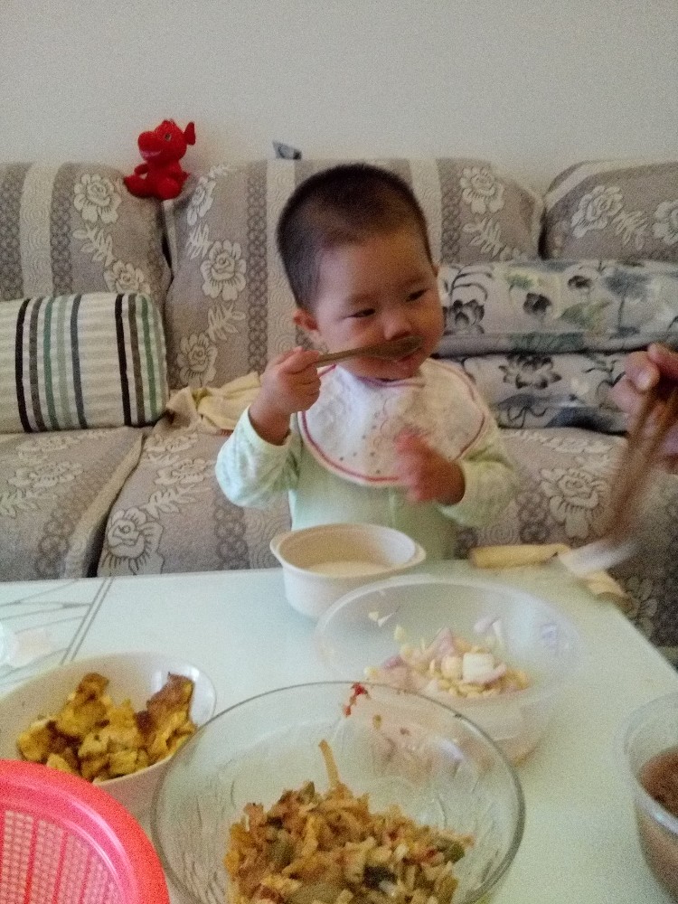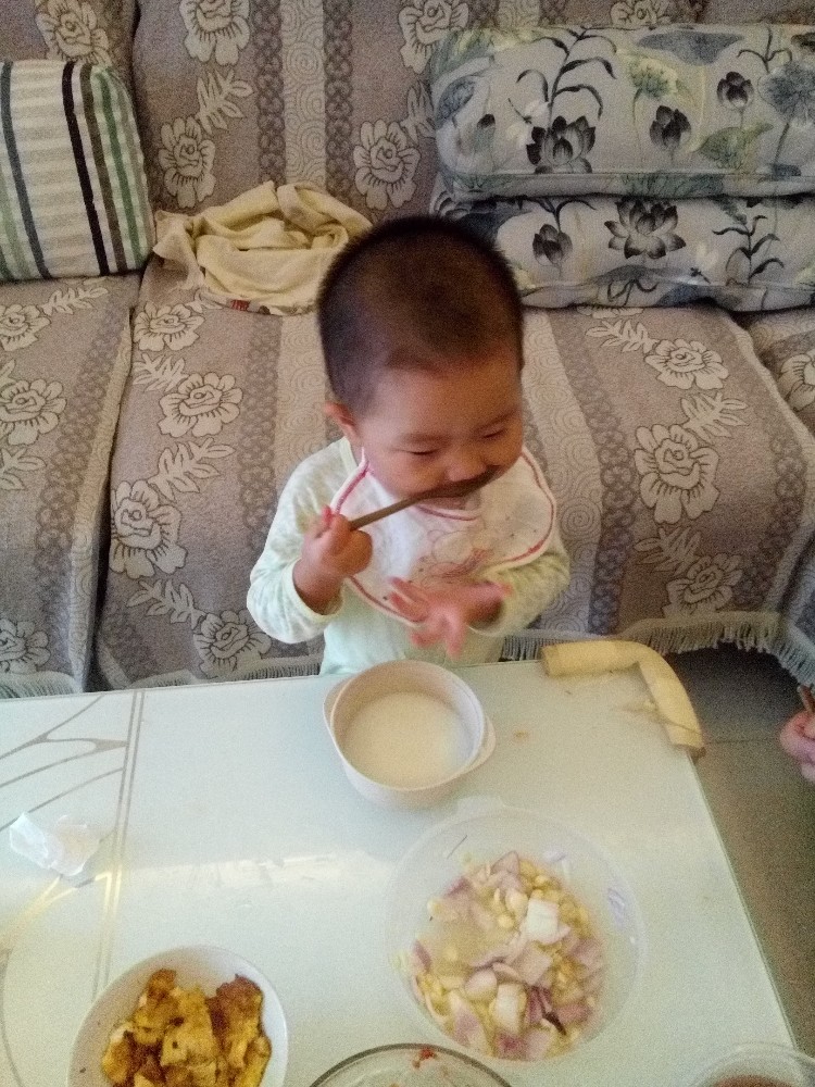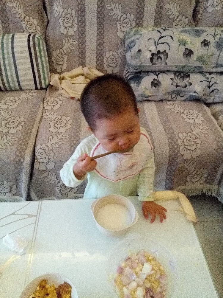 宝宝今天早上基本是自己吃饭的,而且各种小心,各种慢动作,真是感觉一瞬间长大了,会自己吃饭了,好厉害的能力。宝宝这一顿饭吃的非常开心,看着宝宝的表现这么好,我们都给宝宝鼓掌加油,宝宝看见大家都这么开心,自己特别得意呢。