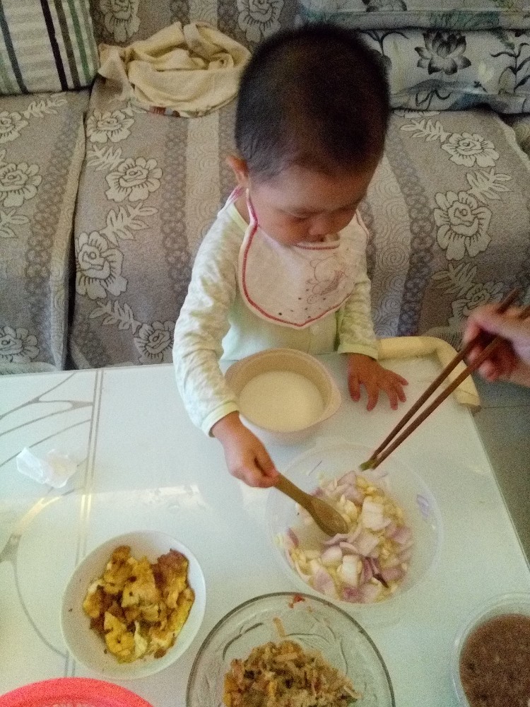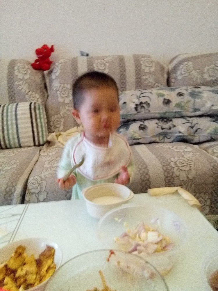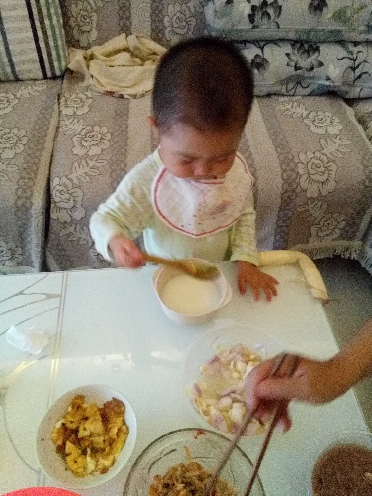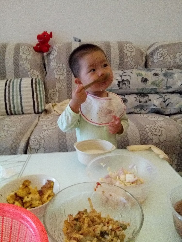 我家小的时候也喜欢自己吃饭,只不过一桌子都是饭粒