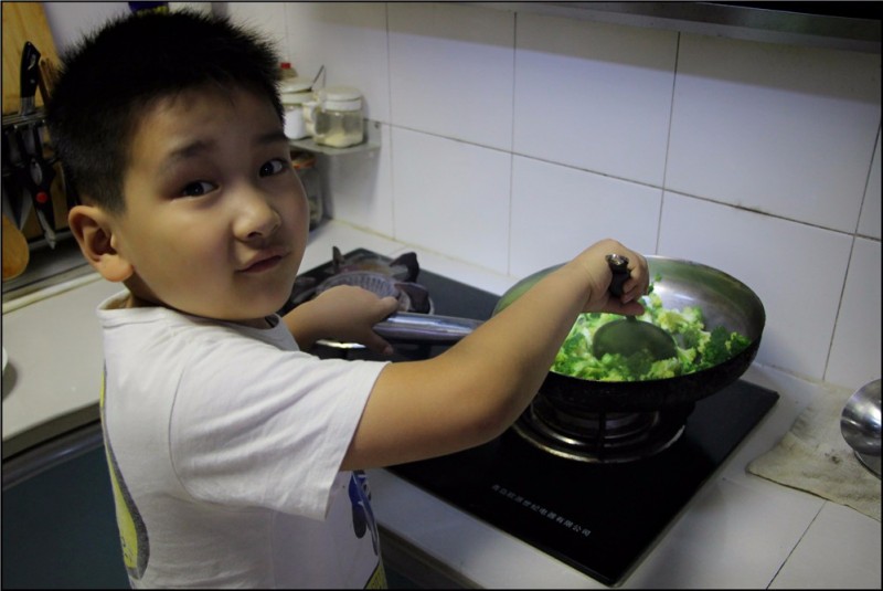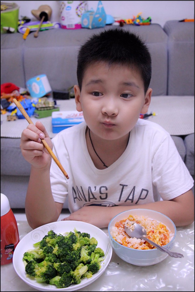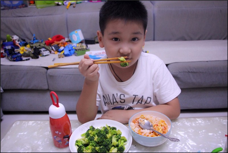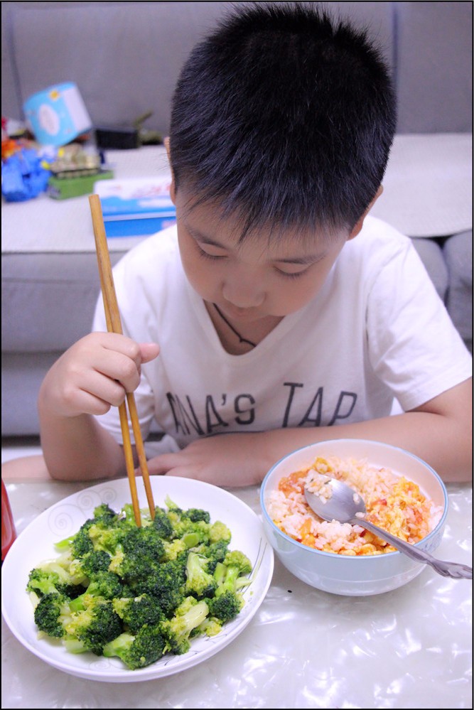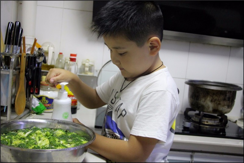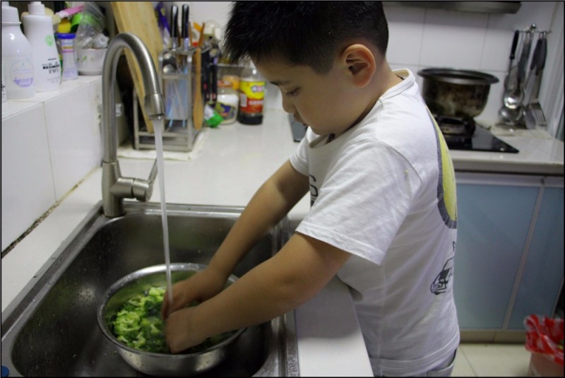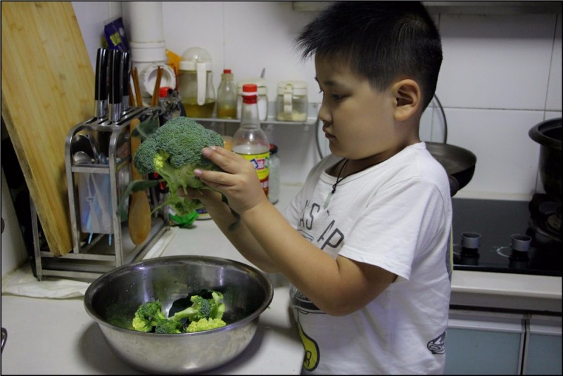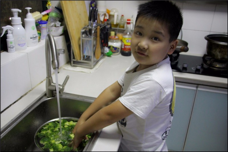 小朋友的自信心来自于家人对他的肯定和鼓励,Aric就是一个很有自信心的男孩,更加富有责任心。每次吃饭的最后一名就得负责刷碗盘,倒数第二名就要负责蔬菜和水果的清洗,而Aric同学经常为了能够有表现自己的机会就特地放慢速度来吃饭。原本是打算让Aric第一名可以提高吃饭的速度,结果却发现恰好相反,Aric的时间总能控制的特别准确,不多不少第二名,乐呵呵的清洗蔬菜和水果,菜端上桌后就高兴的介绍哪些是他清洗过的,是不是味道也更美味了呢?
