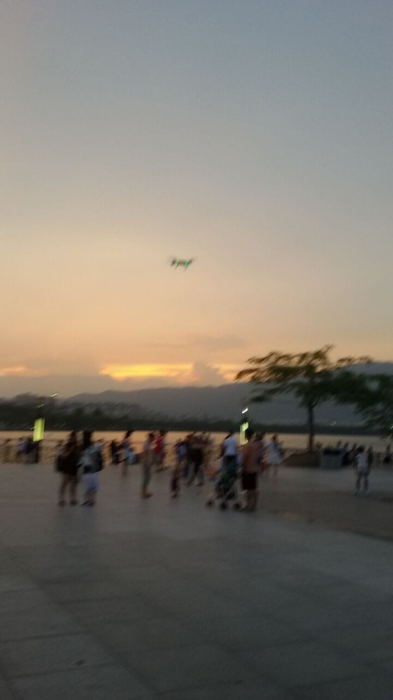 上个星期六那天傍晚,我和小不点到牌坊广场那等他小姨。等着等着,我的手机就响了,原来是他小姨打来的电话,然后我就一手抓住小不点一手接电话,想不到几秒钟后小不点竟然突然不见了,吓得我马上把电话挂了,然后用眼睛迅速搜索周围,十几秒后我终于看到小家伙熟悉的身影了,原来是他不打招呼就去追飞机了。 有了这次的小插曲后,我再也不敢大意了,小不点跑哪我就看到哪,一离开我的视线我就去追他,以免他真的走丢了。刚开始时,我以为这架遥控飞机是私人的,是哪个小朋友的家长在玩,后来才发现不是,而是一位年轻的小商贩在玩,而他身旁却摆放着几盒没有开封的遥控飞机,那一刻,我才知道人家是为了销售遥控飞机才忽高忽低地吸引小朋友们的。