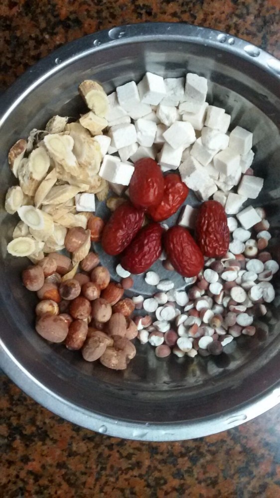 下面跟大家说一下这汤的做法。 材料准备: 芡实、云苓各20克、莲子10克、黄芪20克、生姜三片、猪筒骨300克、红枣6枚 步骤: 1、 用清水将芡实、云苓、莲子洗净,然后用水浸泡二十分钟左右,捞出备用; 2、 红枣洗净,去核,备用;生姜、黄芪洗净,备用; 3、 猪筒骨洗净,然后放锅内开水焯一下(去血水),焯至骨头变色后捞出备用; 4、 砂锅洗净,然后将上述所有材料一同放入锅内,一次性加足水大火煮,水煮开后改小火继续煲一个半小时左右; 5、 关火调入食盐即可饮用。