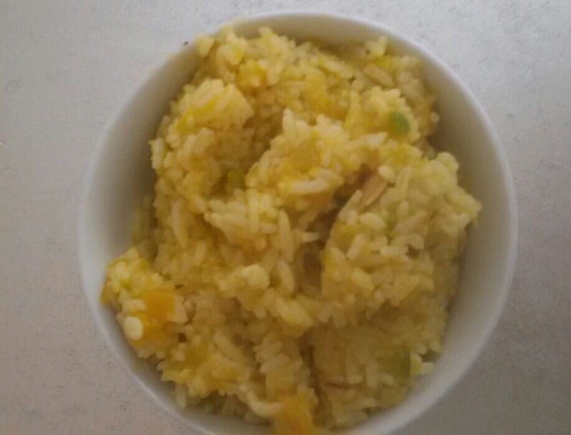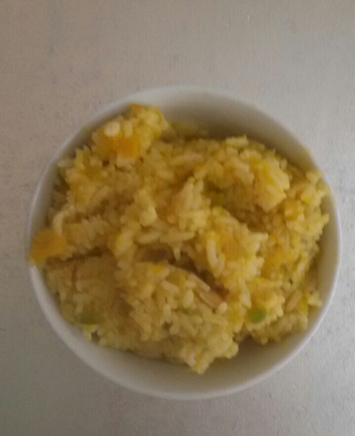 南瓜炒饭 前一天晚上是宝爸做的晚饭,盛饭时我才发现宝爸竟然煮了很多的米饭,然后我就问他干嘛煮那么多的饭?然后他就说是故意多煮的,想用来第二天炒饭。听到这里时,我也没有说他什么,反正我有得吃就行了。 次日早上我起床后,我就看到宝爸已经把我们的早饭都准备好了,我一看,竟然是南瓜炒饭,实在是大大地出乎我的意料。虽然我早上时不太喜欢吃干饭,但宝爸做的南瓜炒菜真的蛮好吃的,又香又粉又甜的,炒饭的颜色看着也很有食欲,加上它吃起来不是很干,所以我还是蛮喜欢这份爱心早餐的,而小不点一直都很喜欢吃南瓜饭,所以他也是很喜欢吃宝爸做的南瓜炒饭的。 附简单做法:南瓜去皮,切小块或擦丝,然后放锅内加适量的水先把南瓜煮软,然后再加入冷饭一同炒熟。 、