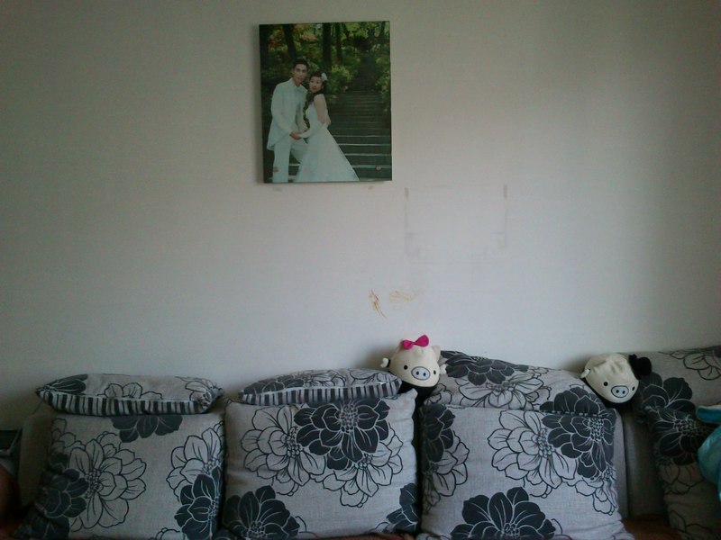 2007年10月份老公工作第二年,我们向亲戚朋友借,靠自己的公积金,几经周折,总算买下了我们的爱心小屋。 大概有110个平方,靠近农村,视野开阔,空气新鲜。有三个房间,客房、主卧、书房,外加一个厨房,一个卫生间。那时真的不容易,买了还要装修。首付时已经借了很多,装修就是一切从简。电视背景上贴了墙纸,其他都是白墙。墙上挂了三张婚纱照片,简单干净。 ![]() ![]()