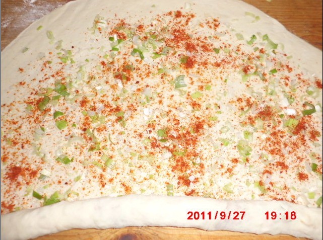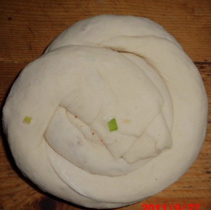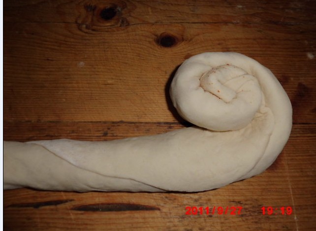 在陕西,到处是各种面食!有锅盔,棒棒馍,烧饼,石子儿馍!白吉饼!油饼!各种面食,我都数不过来了!作为正宗的陕西媳妇,我现在可是学会了很多饼子的做法哦! 我上次去街上,买了一斤千层饼!老公不一会儿就吃完了!买来的就是不耐吃!我看着那饼子的样子,自己想当然!也开始做一些,放着!饿了,就拿上一块吃,很方便的! 这次用的是盐水和的面!面尽量软一些!和好以后,醒半个小时,就把面擀的越薄越好!接着给面饼上面撒上盐,辣椒面,葱花!让后就像卷画儿一样的把面卷起来! ![]() 卷成一个长长的蛇装以后,再,让这条面蛇紧紧盘起! ![]() 蛇的一头,窝在面的最里面! 一定要轻点,要压紧!但是尽量不能让里面的油流出! ![]() 蛇的尾巴,就压在面的上面!开始重新擀这块面饼!要压紧,轻轻地擀的和电饼铛一样的大小!再在电饼铛上面刷上油,油热了以后放上面饼,再在面饼的上面刷上一点油,三分钟后,就熟了!出锅后,我把饼子切成条状,方便拿! ![]() 看看,不错吧!老公说比卖的要好吃多了!亲们也可以试试哦! ![]() 看看宝贝吃的多香啊! 本作品未经作者许可不得转载,转载请征求作者意见。擅自转载使用,将保留追究其法律责任的权利!