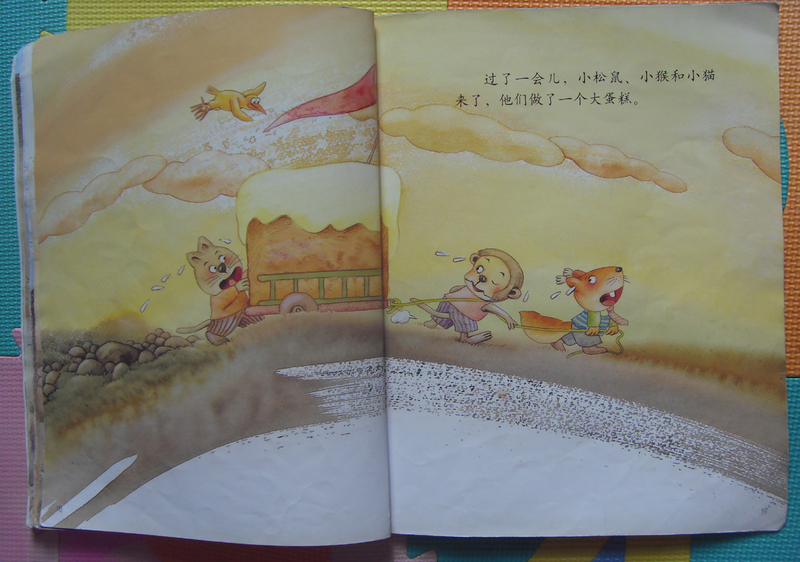 过了一会儿,小松鼠、小猴和小猫来了,他们做了一个大蛋糕。