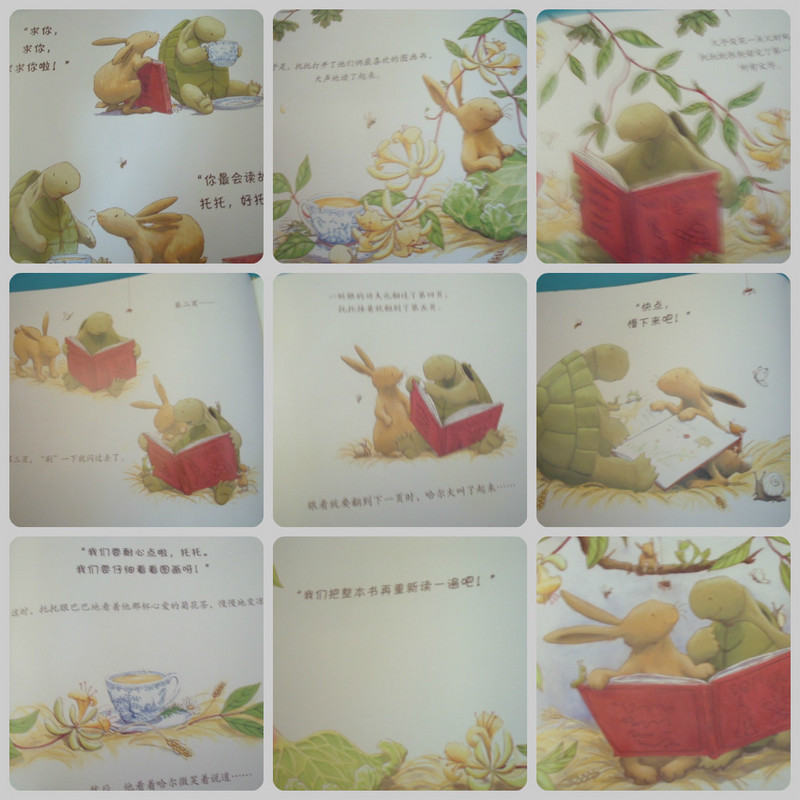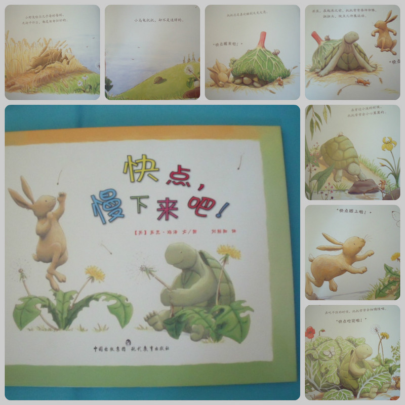 书名《快点,慢下来吧!》 看到书名,当 时我很不理解书名,为什么“快”和“ 慢”要一起用呢,这样不是很矛盾,很奇怪吗? 现在让我们一起寻找这个答案吧!首先我们也看看封面,是现代教育出版社出版的。 ![]() 打开书本,我们就能看到很清新的画面,图中有好多好多的植物和昆虫哦,小朋友们可要仔细看哦! 接着,哈尔就急匆匆的出场啦,它无论干什么,都是这副态度。 小乌龟托托,却不是这样的。托托叫是喜欢睡到天光大亮。 这时候,哈尔大喊着:“快点醒来啦!” 托托听见声音后,伸伸懒腰,扭扭头,做点儿伸展运动。 旁边的哈尔见托托这个样子,就跳着起来喊:“快点起来啦!” 在穿过小溪的时候,托托常常会小心翼翼。 急性子的哈尔在这个时候,总是很不耐烦的说道:“快点跟上啦!” 在吃午饭时候,托托常常会细嚼慢咽。 “快点吃完啦”哈尔又很大声的喊道! 托托还没有把叶子咀嚼完,哈尔就在那里说:“是不是该到吃布丁的时间啦?” 在每一次下棋的时候,托托都会慢慢地走,仔仔细细地想。 托托从不乱丢东西,每次用完后,都会认真地把东西放回原处。 而我们的哈尔只会在那里大喊:“快点收拾啦!” 托托不喜欢,也不需要再重新收拾一遍。 等到哈尔跳上床睡觉的时候,托托更喜欢安安静静地品一杯菊花茶。 然而,就在这时哈尔又有一个新主意了,他看到了一本书。 “托托,我们讲个故事吧?” “求你,求你,求求你啦!” 哈尔看着托托,继续说道:“你最会读故事啦,托托,好托托。” 托托打开了他们俩最喜欢的图画书,大场的读了起来。 几乎没花一点儿时间,托托就很快读完了第一页上的所有文字。 接着第二页,第三页,很快又被读完了。 一眨眼的功夫就快要翻到最后啦,这时候哈尔急了大叫起来“快点,慢下来吧!” 哈尔接着说:“我们要耐心点啦,托托,我们要仔细看看图画呀!” 托托微笑道:“我们把整本书再重新读一遍吧!” 故事分享完了,急性子的哈尔不管做什么事,总是匆匆忙忙的。但是当他想听托托讲故事时,不再是急性子。 不管是小孩子还是我们大人们,都可以看看这本书,感受下这其中的道理。毕竟,有些事情是不能操之过急的。 本作品未经作者许可不得转载,转载请征求作者意见。擅自转载使用,将保留追究其法律责任的权利! 评分记录